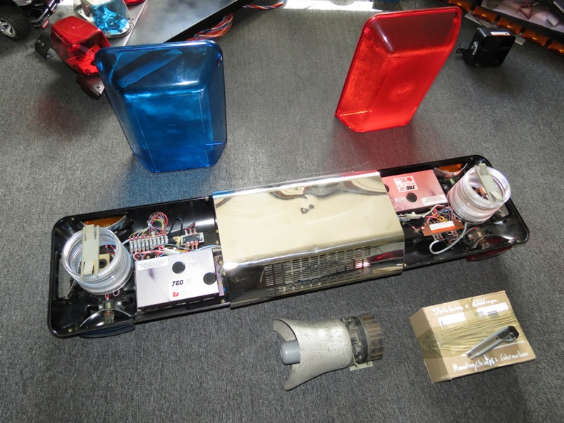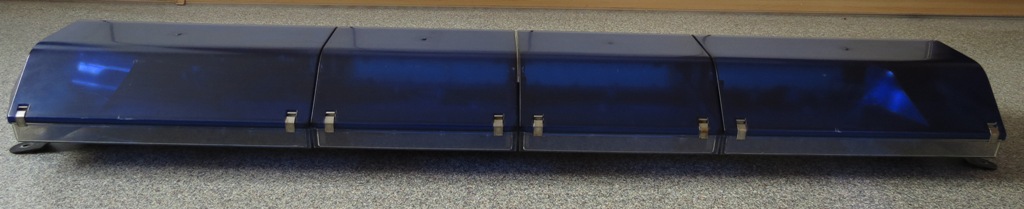 Code3 - Excalibur Anhang 21621 Der Balken versah seinen Dienst auf einem Renault Trafic Ambulance. Ist zwar mit nur 4 Blitzleuchten in den Ecken recht spartanisch ausgestattet, aber ich denke die dunkel! blauen Hauben und der 58" Frame reissen das wieder raus. |