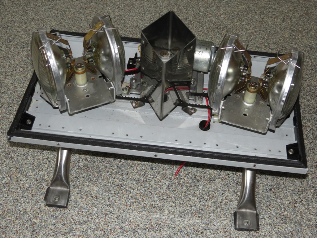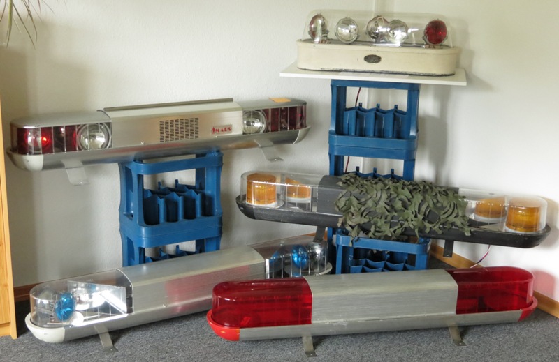 Vielleicht fallen mir ja noch 2 120° Lampenhalter in die Finger, dann könnte man ihn auf dreifach Dreher mit klarer Haube und bunten Sealed Beams umbauen. Könnte recht interessant aussehen :kratz: |
