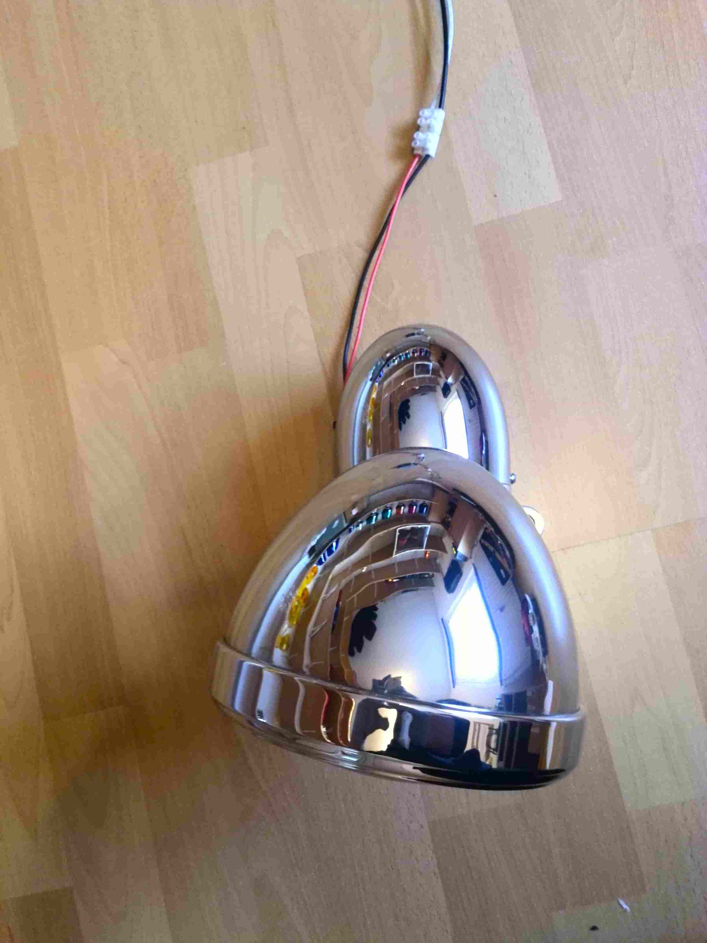 Wie Ihr auf den Bildern, am Anfag sehen konntet waren, insbesondere der Leuchtenkörper, in einem schlechten Zustand. Nun sind die Teile aufgearbeitet, repariert und neu verchromt worden. Hier nun das Ergebnis: Anhang 15745 |