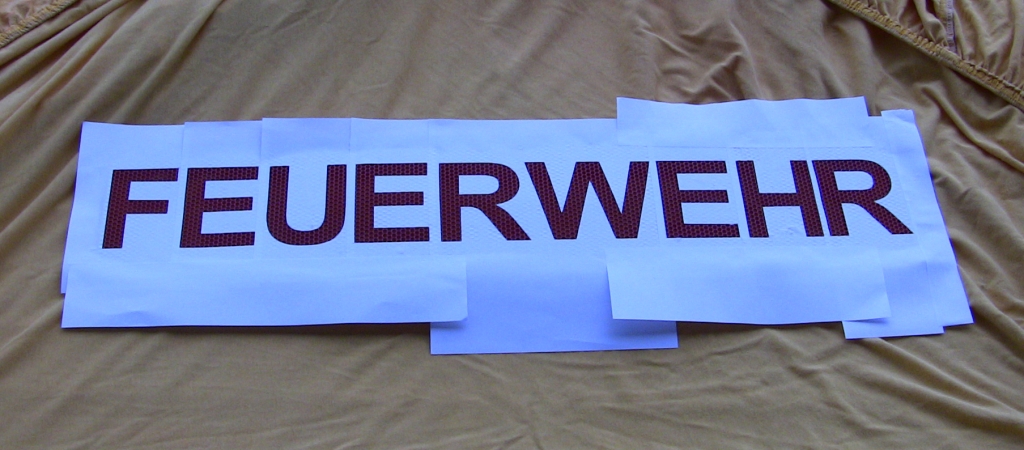 Dazu habe ich erstmal eine "Bitte Folgen" Scheibe nassgeschliffen. Mit 100er Schmirgel in der Badewanne. Anhang 1844 Danach habe ich mir mit Paint eine Vorlage gemacht. Anhang 1845 Diese muss dann aber auch mit Paint ausgedruckt werden sonst gehen die Maße flöten. Die Buchstaben hab ich dann sauber mit einem Skalpell ausgeschnitte und mit Pritstift auf die Scheibe geklebt. Nachdem der Kleber trocken war wurde das ganze matt schwarz lackiert. Leider muss ich die Gitterblende nochmal beschriften, da ich da einen Knick in der Optik hatte und die Schrift viel zu tief und noch dazu krumm ist :grrr: Ergebnis: <object height="340" width="560"> <embed src="http://www.youtube.com/v/0yCaTXVArd4&hl=de&fs=1&" type="application/x-shockwave-flash" allowscriptaccess="always" allowfullscreen="true" height="340" width="560"></object> |