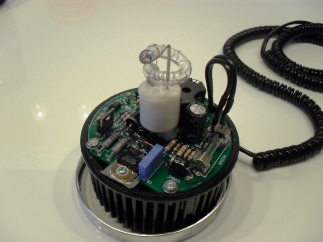 Anhang 6674 Anhang 6670 Die Einzelblitzleuchte hat in der Regel ein glattes Kabel mit transparenter Umhüllung sowie stellenweise einem Panzer. Die Leuchte für die Doppelblitz-Elektronik hingegen hat in der Regel ein Spiralkabel, welches laut Montageanweisung durch das Fenster zu führen ist und nicht eingeklemmt werden soll zwischen Tür und Karosserie (im Gegensatz zum hierfür eigens verstärkten Teil der älteren Ausführung). Die Leuchte weist noch eine Besonderheit auf: ich kenne keine Leuchte, bei der die Haube derart schwer 'runter und 'rauf geht. Ich habe es auch nur mit viel Kraft und so einem Tele-Shop-damit-machen-die-Omas-die-Gurkengläser-auf-Teil geschafft. Hier nun der seltene Anblick der Blitzwendel im Käfig: Anhang 6672 Der obere Teil der Haube ist aus Metall, um ähnlich wie bei der LE-330 von FS die Wärme besser ableiten zu können. Das ist wohl auch bitte nötig, ich habe schon mehrere Bilder von verschmorten Hauben gesehen. Im Sockel ist, vergleichbar mit der Typ 09 von Hänsch ein großer Magnet eingelassen, den Rand des Sockels umgibt ein Gummiring. Anhang 6671 Zur Leuchte gibt es noch einen aus Oma-Sitzpolster-Stoff gefertigten Überzieher um die Leuchte im Fahrzeug zu tarnen und zu schützen. Anhang 6675 Anhang 6676 Hier nocheinmal ein Größenvergleich zur Movia-D: Anhang 6673 |