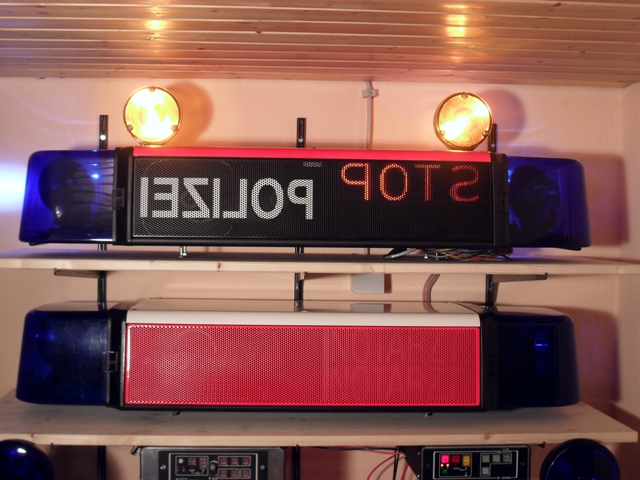 Eine bunte Mischung aus 2 Jahrtausenden, aber immerhin sortentreu (auf den Hersteller bezogen). Aber jetzt die Bilder: Hier der Balken in Aktion: Anhang 4535 Hier sieht man an der Decke gut das intensive Blau der LED-Zusatzblitzer: Anhang 4534 Und hier das K-BT 110: Anhang 4536 Bemerkenswert ist, dass der Schalter "nur KL ein" auf eine Polizei-Version schließen lässt, glücklicherweise sind die Display I bis III Schalter jedoch nicht gegeneinander verriegelt, was mir entgegenkommt. Anhang 4539 Sie schalten