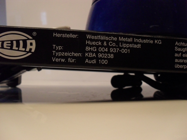 <o:p></o:p> Ich habe derer zwei:<o:p></o:p> <o:p></o:p> <o:p></o:p> Anhang 6680 <o:p></o:p> Auf einer befindet sich eine Hella KLJ70, welche bei aller Liebe zu der Leuchte recht verloren wirkt auf dem Ungetüm und die andere Platte trägt eine Hella KL700.<o:p></o:p> <o:p></o:p> Auch hier setzt Hella auf doppelte Befestigung: Magnet mit Gummisauger auf der einen Seite und Klemmbefestigung am anderen Ende:<o:p></o:p> <o:p></o:p> <o:p></o:p> Anhang 6679 Wie bereits gesagt sind die Platten fahrzeugspezifisch, eine ist für den Audi 100, die andere für den Passat:<o:p></o:p> <o:p></o:p> <o:p></o:p> Anhang 6677 Anhang 6678 Aufruf: hat jemand ein Bild dieser Teile in Aktion? |