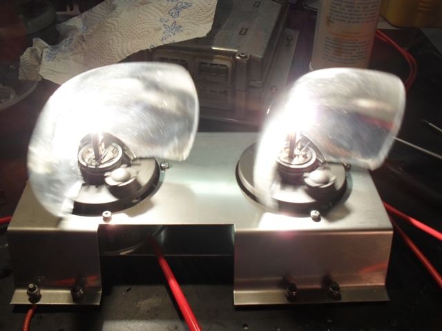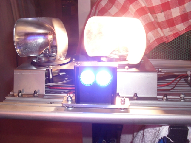 Und noch eine Besonderheit: der rechte Drehschalter stellt die Zündung dar. Die rote LED darüber leuchtet bei "Zündung ein". Anhang 4542 Das hat folgende Bewandnis: laut Anschlussplan kann man die Stromversorgung für das zweite Leuchtmittel der Duo-Drehlichtmodule entweder über Klemme 30 oder 15 anschließen. Ich habe mich für 15 entschieden - so kann ich also den "Sparmodus" im Stand simulieren, bei dem sich beide Spiegel drehen, aber nur eine Leuchtmittel leuchtet. Hier noch die K-LR 8: Anhang 4540 Die Dinger sind echt brutal hell. Pro Modul drei LED, welche leicht versetzt in drei unterschiedliche Richtungen strahlen, um ein weit gefächertes Licht auszustrahlen. Anhang 4538 Und wer sich meinen Sermon bis zum Schluss durchgelesen hat, bekommt noch einen Leckerbissen: das ganze mit roten Hauben. Anhang 4532 Anhang 4541 Die sind aber wieder demontiert und warten mit den roten Endstücken gut verpackt, bis ich mal irgendwann in ferner Zukunft einen weiteren TOPas kriege. Werden ja nicht schlecht... |
