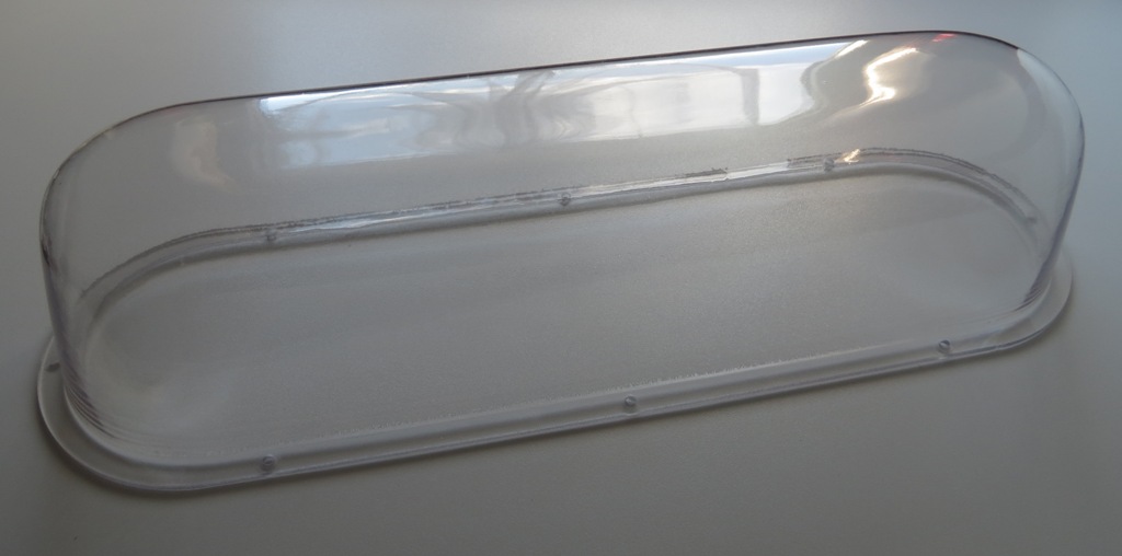 Der eigentlich Plan war die originale Haube instandzusetzen. Also die Sprünge und Macken der originalen Haube auszufräsen und dann mit speziellem Acrylkleber wieder aufzufüllen, damit nach dem anschließenden Schleifen und Polieren (im Idealfall) nichts mehr davon zu sehen ist. Bisher hatte ich mich aber noch nicht getraut den Fräser an der Haube anzusetzen :schäm: Oder ich versuche es bei der Repro-Haube einfach mal mit schleifen und polieren. :kratz: Mal schauen! |