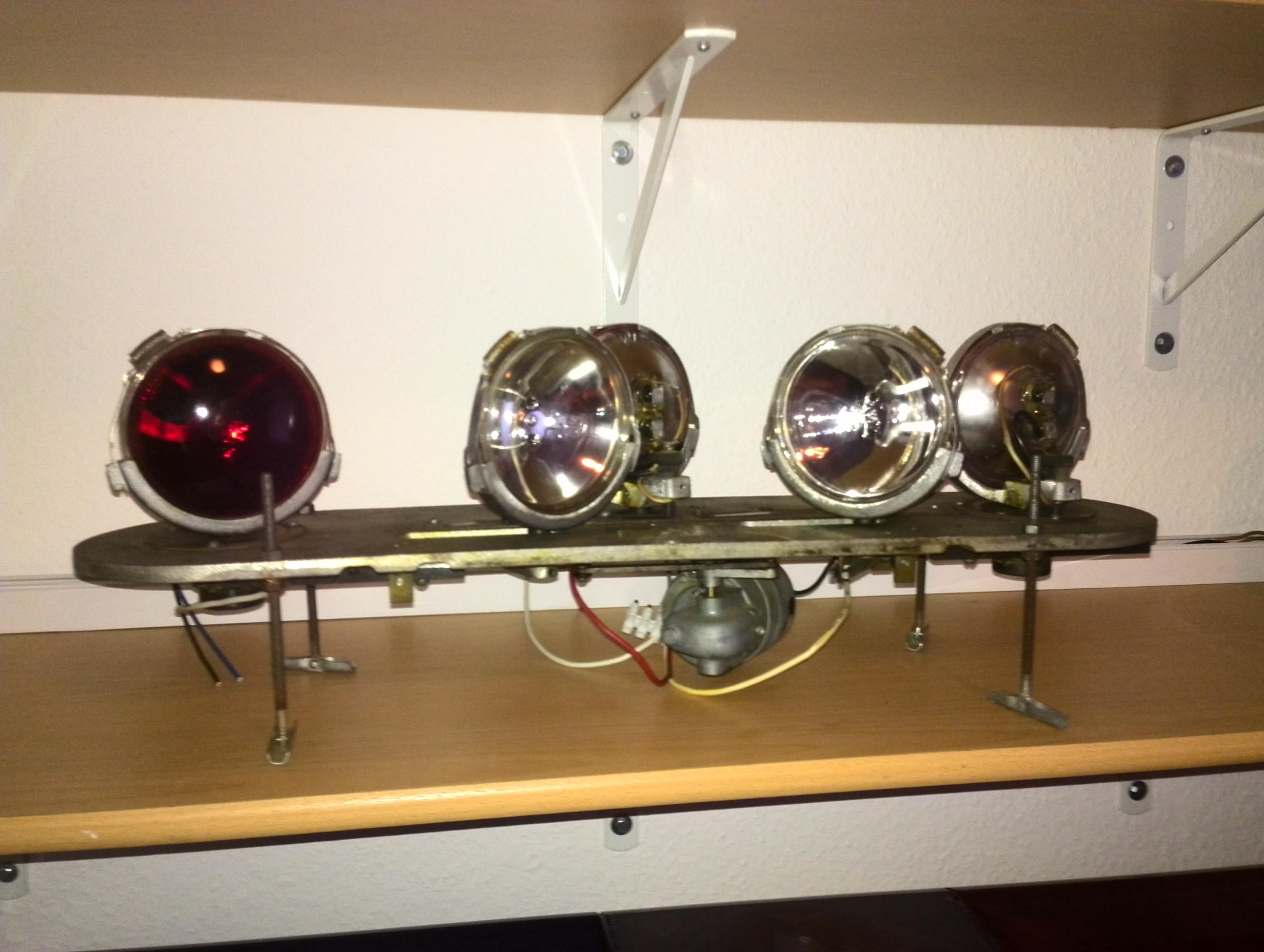 :idee:Dann müßten wir ja eigentlich die Innenleben tauschen, dann sind wir beide dichter dran am Ursprung. :D Meines kommt ja, in Bezug aufs Gehäuse, aus einer späteren (hat ne höhere Nummer). Aber außer der Befestigung (erst Blechstreifen mit Feder, später dann die Drahtbügel) der PAR36 Leuchten wurde am Innenleben ja nichts verändert. Zumindest ist mir bisher nichts weiter aufgefallen. |