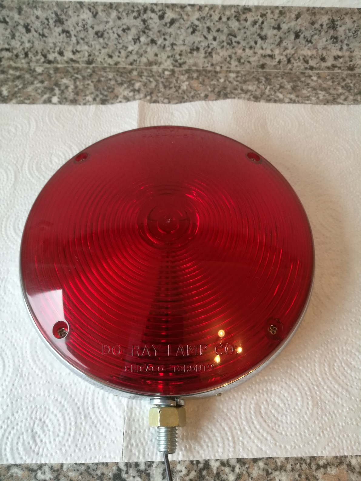 Alle Teile wurden gereinigt, aufgearbeitet und poliert. Zunächst der Ring: Anhang 25324 Dann das Innenleben mit einer 40 Watt Leuchte Anhang 25325 Rote Scheibe hinten: Anhang 25326 Rote Scheibe vorn: Anhang 25327 Und die Seitenansicht: Anhang 25328 Ich haben mich für ein Do Ray P97 Lollipop entschieden. Ich war erstaunt, wie schwierig es war, so eins zu bekommen. Die Leuchten haben einen Nachteil. Wenn man die Schraube, am Sockel, zu fest anzieht, bricht der Gussring. Auch bei den Lichtscheiben bricht sehr gern mal das Schraubenloch aus. Habe diverse Bestellungen gebraucht, bis ich ein vernünftiges zusammen hatte. Das Ergebnis kann sich jetzt aber sehen lassen |
