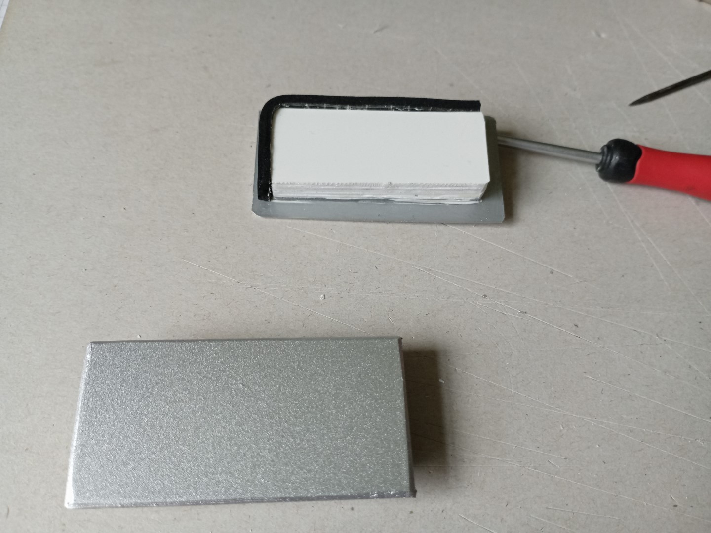 Vorlagen gibt es leider nicht wirklich, daher habe ich etwas Fantasie walten lassen. Zuerst aus Polystrolplatten 1,5mm entsprechende Teile ausgeschnitten und ebenso einen Körper zum Festmachen im Alu-Rechteck. Anhang 29505 Diesen habe ich silber lackiert und teilweise mit Moosgummi verkleidet. Die Dichtung auf allen vier Seiten hätte aufgrund des kurzen Stückes nicht wirklich festgehalten. Anhang 29506 Da so eine Endkappe ja meist den Namen des Herstellers trägt, brauchte ich einen entsprechenden Abdruck im Relief. Anhang 29507 Logo ausgedruckt und ebenfalls auf ein Stück Platte geklebt. Anhang 29508 Jetzt beginnt der fummelige Teil der Arbeit. Alles was schwarz ist, muss stehen bleiben... Anhang 29509 irgendwann... Anhang 29510 rot gefärbt wirkt es deutlich schicker Anhang 29511 Vielleicht kann ich GROTE noch überzeugen, dies in deren Programm aufzunehmen. :D |