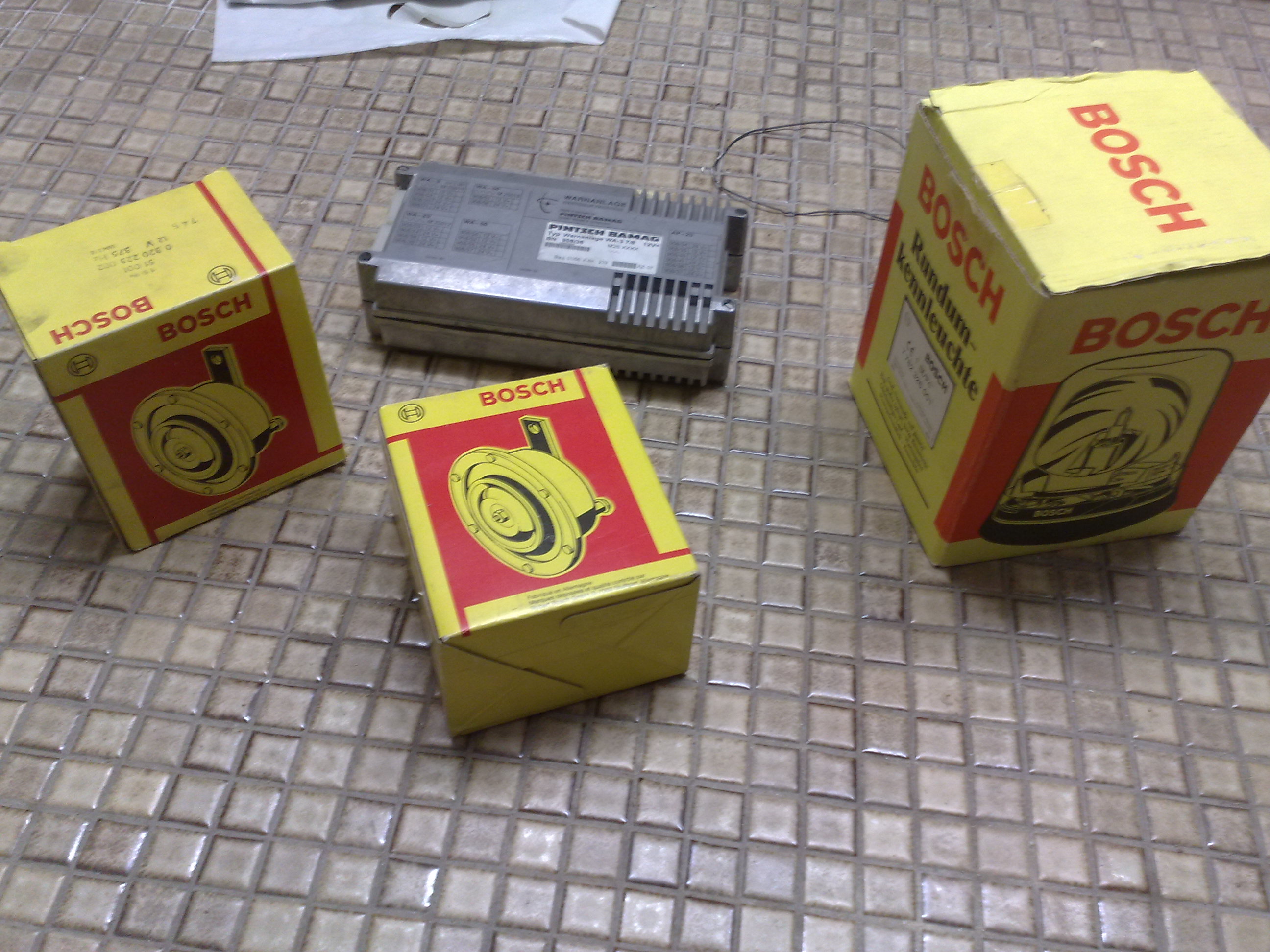 Einige Sachen habe ich hier aber noch nicht mit dabei. Habe noch eine fast neuwertige RTK6-SL (Polizeiausführung mit KL-XR, ASG-LED, LSP-V, LSP-H) eine RTK3 kommt jetzt noch, RTK4-SL Notarzt soll demnächst auch noch kommen und eine RTK4-SL (Autobahnpol.) sollte schon seit über zwei Monaten bei mir sein. Leider ist wohl was bei GLS schief gelaufen. Bin mit "Marc01" in Klärung. Typ 40 pico LED, K-SM 20, Typ 340, RTK-SL/VE, Hella Starktonhörner sowie diverse Bedienteile fehlen noch. Anhang 5372 Einige Teile habe ich gebraucht bekommen, einige neu. Steht immer dahinter. Wandel & Goltermann Warnanlage von erstem Wolfsburger NEF (aus dem Schrott geholt) Anhang 5344 Wandel & Goltermann WA3 (momentan zerlegt, gebraucht) Anhang 5337 Pintsch Bamag K-SM 20 -für den verdeckten Einbau- mit Kabelbaum und K-BT110 "Feuerwehr" (gebraucht) Bild kommt nach 2x Pintsch Bamag TOP1 -einmal silber, einmal weiß, beide mit Drehspiegel-Modulen (gebraucht) und beide mit Dachaufsatz Anhang 5340 Pintsch Bamag TOPas mit Einzeldrehspiegel-Modulen (gebraucht) Anhang 5335 Pintsch Bamag TOPas 100 mit Doppelblitz-Modulen, Hinterleuchtung, K-SM 20, 2x LSP, K-BT110, Kabelbaum, Montagezubehör (neu) Anhang 5336 Pintsch Bamag K-FS1 (gebraucht), soll in den TOPas 100 verbaut werden. Anhang 5338 Pintsch Bamag TOPas 115 mit Doppelblitz-Modulen, ASG-Matrix vorne und hinten, K-SM 20, Kabelbaum, K-BT6 (gebraucht, sehr guter Zustand) [Momentan ist der Balken verpackt, weil meine Sammlung sich gerade im Umzug befindet. Auf der "Baustelle" sind die vier Balken gerade sehr verdreckt und verpackt.] Anhang 5339 Pintsch Bamag K-LR 8 (gebraucht) mit Halter für Heckklappenverkleidung Anhang 5622 Hella WL-LED (blau, gebraucht) Anhang 5341 Hella HWL-X (gebraucht) Anhang 5342 Hella BSX-Compact (neuwertig - unklar, ob die verbaut waren) Anhang 5371 Hella BSX-Micro (gebraucht) Anhang 5343 Hella Starktonhörner mit Steuergerät (gebraucht) Bild kommt nach Hella RTK-SL/VE alte Baureihe, komplett mit Kabelbaum, BT usw. (neu) Bild kommt nach Hella RTK1 (schlechtes Bild, schlechter Zustand) Anhang 5345 Hella RTK3 (gebraucht) Bild kommt nach Hella RTK3-SL (gebraucht, guter Zustand) Lichthaube fehlt. Anhang 5346 Hella RTK4-SL (Autobahnpolizei) mit 2x LSP-V, 3x ASG Sollte demnächst endlich eintreffen! Hella RTK6-SL (Polizei) mit KL-XR, ZSE, LSP-V, LSP-H, ASG-LED vorne und hinten, Vorrüstung KL-A, Kabelbaum, BE Polizei (neuwertig, kann nicht sagen, ob die RTK verbaut war) Bild kommt nach Hella RTK6-SL (Notarzt) mit KL-XR, ZSE, LSP-V, BSX-F, ASG-GL (weiß NA) vorne und hinten, Dachaufsatz, Kabelbaum, BE Notarzt (gebraucht) [Auch diese RTK ist momentan wegen Umbauarbeiten und Umzug verpackt und verdreckt] Anhang 5339 Hella KLJ 80 mit Berliner Martin-Horn 2297GM (gebraucht) [Habe nur ein Martin-Horn 2297GM in meiner Sammlung. Das kommt auf das Berliner Geweih !] Anhang 5347 "Berliner Geweih" mit Hella KLJ 80 und Martin-Horn 2297GM (gebraucht) Anhang 5348 Martin-Horn 2097GM (komplett, neu) Bild kommt nach Bosch RKLE 150 (neu) Anhang 5351 Bosch Starktonhörner, Lichthaube RKLE 110 in blau (gebraucht) Anhang 5352 Becker SINFO (gebraucht) [Wegen Umzug und Umbauarbeiten stark verschmutzt] Anhang 5349 Hänsch DBS 826 Polizei (gebraucht) [Wegen Umzug und Umbauarbeiten stark verschmutzt] Anhang 5354 Hänsch DBS 3000 K (Notarzt) Anhang 6294 Hänsch Typ 340 komplett, mit Kabelbaum für ADZ (neu) Bild kommt nach Hänsch Typ 400komplett, mit Kabelbaum für ADZ (neu) [Karton habe ich noch nicht geöffnet, ist noch verklebt.] Anhang 5355 Hänsch Typ 400 US komplett, mit Kabelbaum für Handbedienteil-Profi Bild kommt nach Hänsch MOVIA-D (habe ich neu bekommen, ist jetzt aber eher "gebraucht") Anhang 5361 Hänsch Typ 09 mit glattem Kabel und Metall-Winkelstecker (neu) Anhang 5362 Hänsch Typ 09 mit Spiralkabel (neu) Anhang 5363 Hänsch COMET-E (neu - immer im Auto) Anhang 5360 Hänsch COMET-B (neuwertig) Anhang 5356 Hänsch COMET auf Splithoff KLT Anhang 5357 Hänsch NOVA (neuwertig) Anhang 5358 Hänsch NOVA-S (neu) Anhang 5359 Hänsch Sputnik nano RWS (neu) Bild kommt nach Hänsch Sputnik pico (waren neu, jetzt "gebraucht") Anhang 5364 Anhang 5365 Hänsch Sputnik pico mit Einbaurahmen (neu) Anhang 5366 Anhang 5367 Hänsch Typ 40 pico LED, blau (neu) Bild kommt nach Hänsch Typ 43 (neu) Anhang 5368 Hänsch Typ 43 LED (neu) Anhang 5369 Hänsch Typ 45 (gebraucht) Anhang 5370 Federal Signal 911E LED-Blitzer, blau (neu) Bild kommt nach Bilder von den Bedienteilen usw. kommen auch noch nach. ;) |