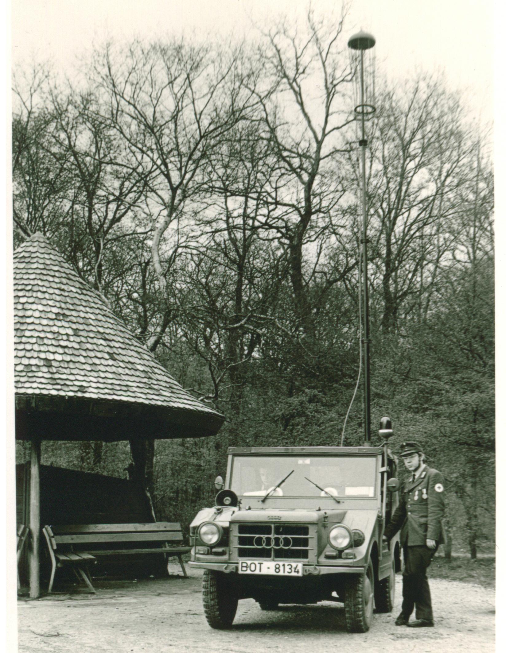 Der gute alte DKW Munga. Auch im LSHD war der als Fukow weit verbeitet. Der abgebildete Munga war "mein" erstes Blaulichtauto als "Freigestellter" nach § 8(2) KatSG! Und trotz aller Mucken, die er hatte, ob mit maximal 90 km/h auf der Autobahn oder im Kriechgang in unseren heimischen Kiesgruben, es hat mit ihm einfach nur unbändigen Spaß gemacht. Und dann der BOS-Funk mit dem FuG 7a (noch mit Röhren bestückt) am 6-m-Geroh-Kurbelmast ...