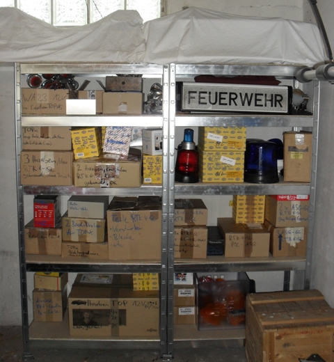 <o:p></o:p> <o:p></o:p><o:p> <o:p></o:p> Netzgeräte <o:p></o:p> <o:p></o:p> Bei mir versehen drei Netzgeräte ihren Dienst. Das kleinste ist zugleich das dienstälteste. Aufgrund der lediglich 7A Leistung nutze ich es nur, wenn es um eine einzige Kennleuchte geht, da die Größe doch sehr praktisch ist. Das nächstgrößere mit 25A nutze ich im "Bastelstadium", sprich beim Neubau von Bedieneinheiten. Außerdem dient dieses zur Spannungsversorgung der Party-TOP-1. Das 50A Netzgerät von MAAS ist fest angeschlossen. Damit kann ich (leider natürlich nicht gleichzeitig) alle mit Bediengeräten ausgestatteten Balken ohne extra Verkabelung laufen lassen. Anhang 10290 Anhang 10281 Anhang 10282 </o:p>Außenlager <o:p></o:p> <o:p></o:p> Im Laufe der Zeit sammelt sich doch so einiges an überzähligen Teilen an. Weil ich die Sucherei leid war und das Durcheinander im Keller auch anfing, unerträglich zu werden, habe ich kurzerhand in der Garage Platz gemacht und drei Stahlblechregale aufgestellt.<o:p></o:p> <o:p></o:p> Dort finden sich jetzt gut verpackt größere Ersatzteile, Ersatzhauben, unvollständige und doppelte Anlagen, Gummiunterlagen und anderer Kennleuchten- und SoSi-Krimskrams. Auch ein paar Festmontage-Kennleuchten, die irgendwann mal zu mir kamen stehen nun hier, da sie nicht in mein Sammelschema passen. <o:p></o:p> <o:p></o:p> Anhang 10280 |