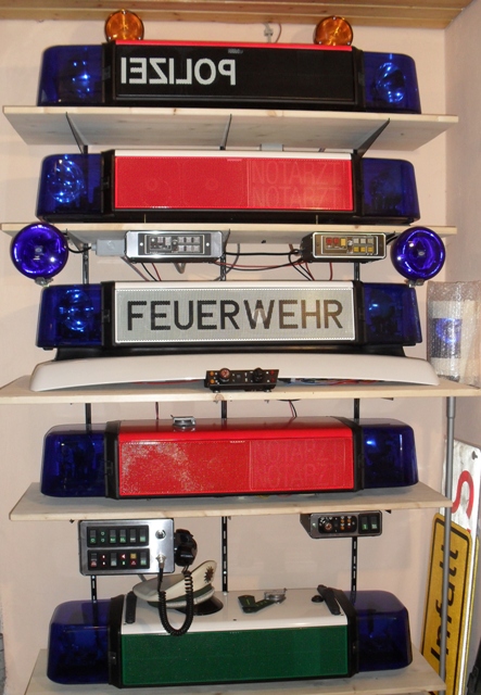 <?xml:namespace prefix = o ns = "urn:schemas-microsoft-com:office:office" /><o:p></o:p> <o:p></o:p> Meine Sammelleidenschaft umfasst Sondersignalanlagen und Kennleuchten (jedoch ausschließlich zur Magnet- und Aufsteckmontage), überwiegend deutscher Hersteller.<o:p></o:p> <o:p></o:p> Sämtliche Sammlungsstücke sind voll funktionsfähig. Die SoSi-Anlagen in meinem Hobbyraum sind ständig mit der jeweiligen Bedieneinheit verbunden, so dass sie -nach Einschalten der Spannungsversorgung- zu Testzwecken betrieben werden können. Dazu sind einige Anlagen aus Lärmschutzgründen mit Widerständen (TOP, TOPas) bzw. Schaumstoff (LSP-V der RTK 6-SL) gedämmt. Bei allen RTK 4-SL kann die Testschaltung aktiviert werden. Insbesondere das Aufarbeiten der Anlagen sowie der Anschluss bis hin zur vollen Funktionsfähigkeit machen für mich den Reiz dieses Hobbys aus.<o:p></o:p> <o:p></o:p> Grundsätzlich habe ich vor allem zu Beginn meine Sammlerei so ziemlich alles genommen, was ich zu annehmbaren Konditionen und in einem sammelwürdigen Zustand bekommen konnte. Mittlerweile ist der noch freie Platz in meinen Hobbyräumchen jedoch derart begrenzt, dass einige Anlagen (zwei fertige TOP-1, zwei unfertige RTK 4-SL) ausgelagert worden sind. Somit werde ich in Zukunft verstärkt selektieren müssen und die Richtung weiter eingrenzen, in welche sich meine Sammlung entwickeln soll.<o:p></o:p> <o:p></o:p> Wie man an der Anzahl in der Aufzählung meiner Sammlungs-Exponate sehen kann, hat es mir bei den Kennleuchten aus unerklärlichen Gründen die Hella KL(J) 70 (sowie ihre Aufsteckvariante KL(J) 60) besonders angetan und bei den SoSi-Anlagen die Hella RTK 4-SL.<o:p></o:p> <o:p></o:p> Exponate, welche in separaten Beiträgen näher beschrieben sind, erkennt man an der hellblauen Schrift (Link zum Beitrag).<o:p></o:p> <o:p></o:p> <o:p></o:p> Zur Zeit (Stand: 03.10.2012) besteht meine Sammlung aus folgenden Kennleuchten und Sondersignalanlagen: Kennleuchten Magnetmontage: <o:p></o:p>