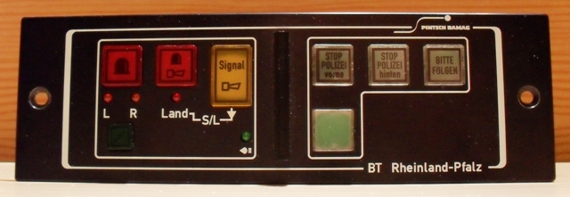Alle Tasten sind mit Hinterleuchtung ausgelegt, bei Funktion leuchten sie heller. Die Bedienteile lassen sich generell in drei (K-BT 12X vier) Bereiche untergliedern: linker Bereich: Sondersignalbereich Hier lassen sich alle SoSi-Funktionen bedienen, sprich - "nur Kennleuchten ein" - "Kennleuchten ein, Klangfolgebereitschaft" - "Horn ein". Analog zum Hella-Alarmzugdrehschalter erlaubt die Rettungsdienst-/Feuerwehr-Variante nicht die Stellung "nur Kennleuchten ein". Die Funktion der Kennleuchten (links und rechts) wird über rote Kontrollleuchten angezeigt. Beim K-BT 121 ist noch eine dritte Kontrollleuchte vorhanden (H), welche für eine Heckkennleuchte bzw. die Frontblitzer verwendet werden kann. Bei der Möglichkeit einer Stadt-Land-Umschaltung lässt sich diese bei laufendem Horn durch Drücken des Schalters "Kennleuchten ein, Klangfolgebereitschaft" umschalten. Landhorn wird durch eine rote Kontrollleuchte angezeigt. (Natürlich nur bei den Anlagen, welche im "Ruhemodus" Stadtsignal abstrahlen, z.B. K-SM 20 von Pintsch Bamag, bei RTK 4-SL ist es genau umgekehrt.) Bereich rechts oben: Display-Bereich Drei Ausgänge (Belastung je max. 5 A bei K-BT 110, je max. 2 A bei K-BT 121) können beliebig belegt werden. Üblicherweise dienen die Tasten der Schaltung von Anhaltesignalgebern oder der Hinterleuchtung des Balkens. Bei der Polizei-Variante sind die Tasten in der Regel gegeneinander verriegelt, so dass nur je ein ASG aktiv ist. Bei K-BT 12X wird zusätzlich zur stärkeren Beleuchtung der Taste bei Funktion ein Signalton ausgegeben. Bereich rechts unten: Sprachdurchsage / Testfunktion Über die von Hella-Bedienteilen bekannten Symbole können sowohl der Funkverkehr aufgeschaltet wie auch Durchsagen mittels Handapparat/Mikrophon durchgeführt werden. Eine Lautstärkeregelung ist über das Potentiometer mit dem mittig angebrachten Regler möglich. Die beiden Tasten sind gegeneinander verriegelt. Die Testfunktion (nur Taster) erlaubt bei eingeschalteten Kennleuchten und Zündung die Abgabe eines Zyklus des Sondersignals in verminderter Lautstärke (unmittelbar nur bei PB/WG-Anlagen, bei RTK 4-SL z.B. nicht direkt). Bei den Bedienteilen der K-BT 12X-Reihe gibt es unterhalb des Sondersignalbereiches noch bis zu zwei Zusatztasten, z.B. für Frontblitzer, Arbeitsscheinwerfer etc. Die Funktion sowie Schaltbedingungen (Kennleuchten ein, Zündung ein) sind in der Programmierung des K-BT festgelegt und vom Anwender nicht änderbar. Hier die Bilder meiner Bedienteile: K-BT 110 in der Polizei-Ur-Ausführung ohne Umschaltmöglichkeit für Stadt-/Land-Signal (steuert Xenon TOP-4): Anhang 11362 K-BT 110 in der Feuerwehr-Ausführung (noch unverbaut): http://sosi.myds.me/forum/attachment...3&d=1262602023 K-BT 110 in der Rettungsdienst-Ausführung (steuert meinen TopAs 140 mit Duo-Drehlicht): http://sosi.myds.me/forum/attachment...2&d=1262602023 Der Unterschied zwischen RD- und POL-Variante liegt darin, dass bei der RD-Variante im Gegensatz zur POL-Variante die drei Display-Tasten nicht gegeneinander verriegelt sind. K-BT 120 (steuert meine schweizer RTK 4-SL): Anhang 7755 K-BT 120 BaWü (hier noch an die schweizer RTK 4-SL angeschlossen): http://sosi.myds.me/forum/attachment...4&d=1262603229 K-BT120 RLP (identisch mit BT BaWü): Anhang 7894 K-BT NW (noch unverbaut): http://sosi.myds.me/forum/attachment...0&d=1262602023 K-BT 121 (noch unverbaut, mit Schaltmöglichkeiten für Frontblitzer, Arbeitsscheinwerfer, Hochleistungsfrontblitz [Display I-Taste, nicht mit den beiden anderen Display-Tasten verriegelt]) http://sosi.myds.me/forum/attachment...5&d=1262603229 Hier mal ein Vergleich der unterschiedlichen Längen (links K-BT NW, Mitte K-BT 121, rechts K-BT 110): http://sosi.myds.me/forum/attachment...1&d=1262602023 Das K-BT 6 sticht aus den übrigen Bedienteilen heraus. Es ist zur digitalen Ansteuerung der TOP-1 gedacht. Wie auch das Bedienteil der Hella RTK 6-SL wird es in einen DIN-Radio-Schacht eingeschoben und arretiert bzw. mittels der Standard-Entriegelungshaken ausgebaut. Es erlaubt die oben genannten Sondersignal-, Test,- Durchsage-/Funkaufschaltungsfunktionen mit Ausnahme der Stadt-/Land-Umschaltung (nicht möglich aufgrund des verbauten Sondersignalgenerators). Desweiteren lassen sich die gezeigten Texte aus dem Display der Anlage darstellen. Dies allerdings nicht wie bei der RTK 6 durch Auswahl, ob vorne oder hinten, sondern so, wie im Eprom gespeichert. So lassen sich "Bitte Folgen" und die Pfeile nur nach hinten abstrahlen. http://sosi.myds.me/forum/attachment...6&d=1262603911 <!-- / message --><!-- attachments --> |