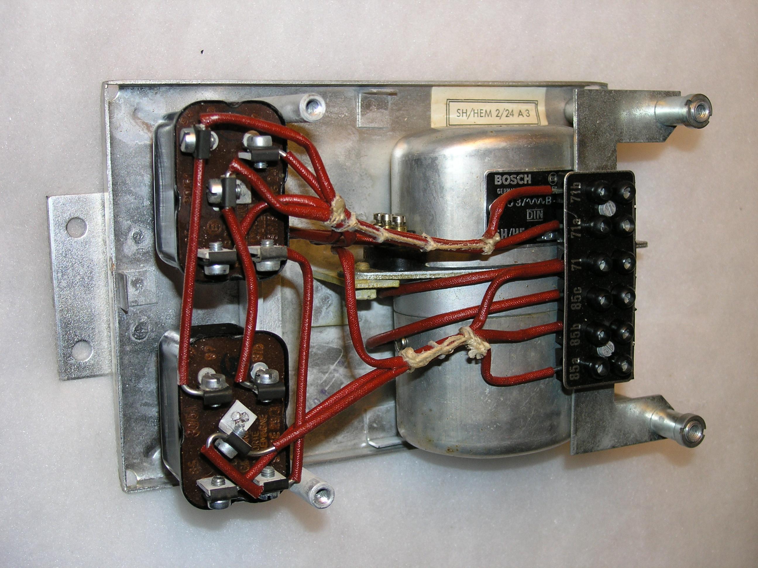 Die ersten Eisemänner mit Halogenleuchtmittel müssten so um 1968/69 herum auf den Markt gekommen sein, allerdings in der Ausführung ohne Ziehrring. Genaueres können sicher die Forumnianer mit zeitgenösischem Werbematerial schreiben.:) Bezüglich des Klagnfolgesteuergerätes: Es kann auch sein, dass eins von den großen, schwarzen Steuergeräten mit Schraubanschlüssen verbaut war. Die hatten auch noch einen Scheibenwischermotor mit zwei Lastrelais intus. |