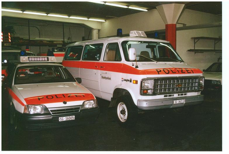 Hier sind ein paar Fotos, die ich im Juni 1990 in der Tiefgarage der Stadtpolizei und Sanität St. Gallen aufgenommen habe.