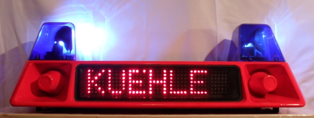 eine TOP-1 in leuchtrot mit einem K-BT 6 mit „Party-Textbaustein“. Dazu später mehr. <o:p></o:p> Alle drei Modelle haben die originalen (Bosch-)Drehspiegeleinsätze, leider habe ich (noch) keine mit den Xenon-Modulen und keine in silber. <o:p></o:p> Die leuchtrote TOP war aufgrund des äußeren Zustandes seinerzeit zum Ausschlachten und als Ersatzteile-Träger gedacht (wie man unten sieht, sind auch einige LED noch defekt). Dann kam mir aber die Idee, für die Cocktailbar des alljährlichen Tages der offenen Tür bei meiner Feuerwehreinheit eine Signalanlage als „Show-Effekt“ zu konfektionieren. <o:p></o:p> Ursprünglich wollte ich eine geschenkte Feuerwehr-RTK 4-SL umbauen und mit speziellen ASG aufrüsten (z.B. mit Textscheibe HAPPY HOUR) oder so. Der Aufwand mit Reinigung, ggf. neu lackieren, ASG einbauen, Verkabelung etc. war mir aber zuviel Arbeit. <o:p></o:p> Da fiel mir besagte TOP in die Hände, die aufgrund der digitalen Ansteuerung und des Matrix-Displays deutlich mehr Möglichkeiten bietet. <o:p></o:p> Also frisch ans Werk: