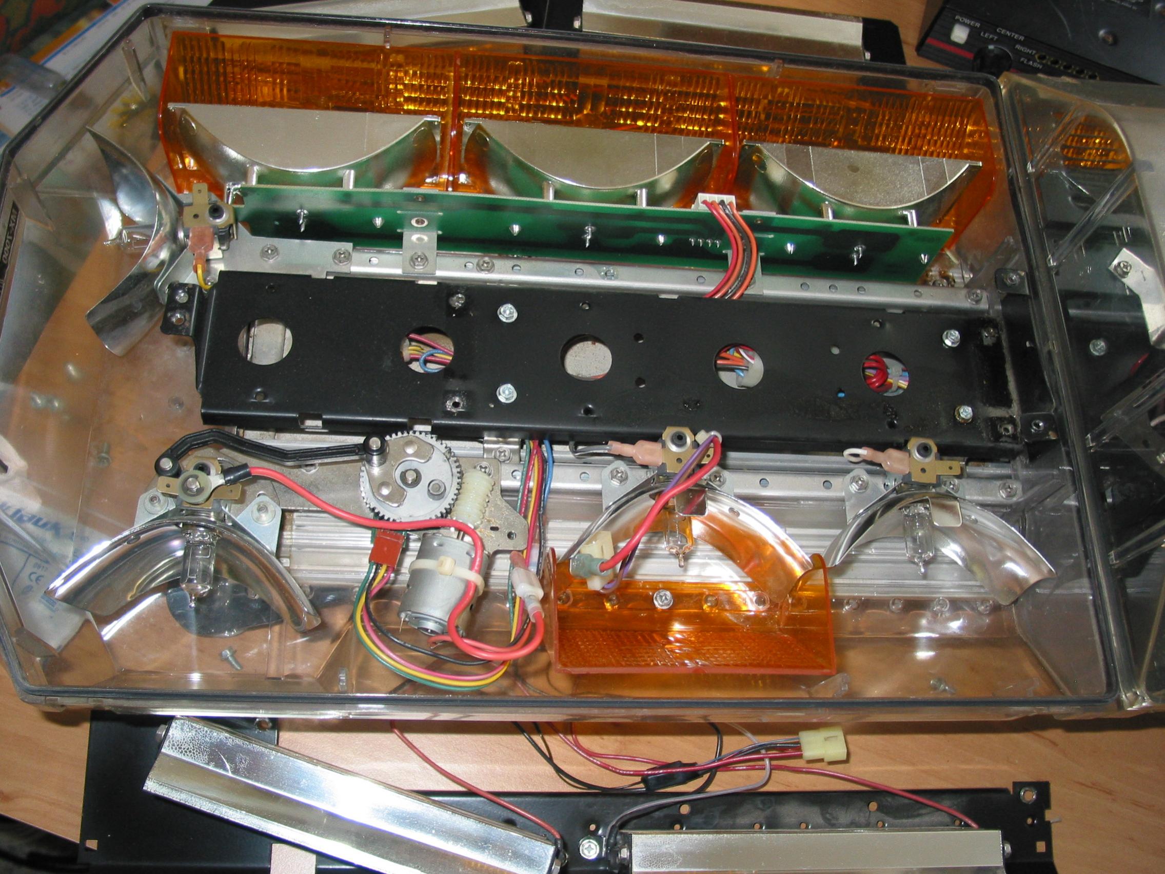 Es unterscheiden sich nicht nur die Spiegel von den späteren (aktuelle Bauform :frage:) sondern auch die halb-zylindrischen Filter sind unterschiedlich :kratz: Draufsicht auf die Mittel-Sektion Anhang 9114 Und einer der Diagonal-Spiegel Anhang 9113 Edit: Da bei beiden MX 700er Flasher-Module verbaut und mit Datumversehen sind kann man ja in etwa das Alter der Balken bestimmen. Der "alte" MX (Version 1) scheint von 1992 zu sein, wobei der andere mit dem neueren Aufbau (version 2) von 1995 ist. |