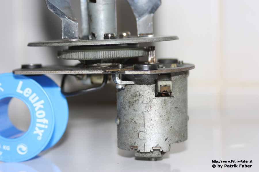 Brauchst nur die beiden Schrauben neben dem Motor etwas lösen und dann das Motorgehäuse leicht drehen. Dann kommt der Antrieb wieder an das große Zahnrad. Gruß HB |