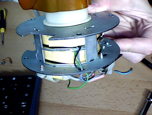 der ist zu schwer weil der Kondensator kaputt ist. Der Kondensator ist für die Phasenverschiebung da. Weil du ja kein Dreiphasenwechselstrom hast, wird von L1 über den Kondensator eine künstliche Phase erzeugt.
