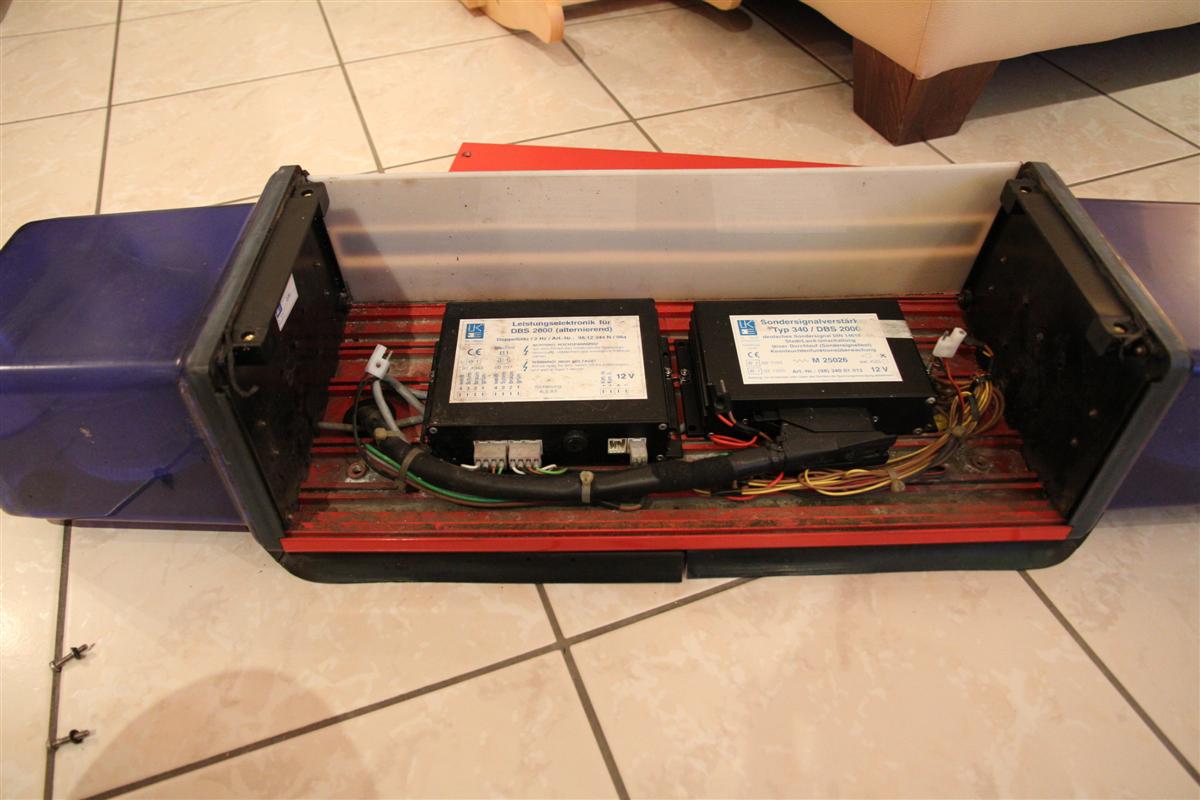 Ich habe gestern seit lamgem nochmal einen Neuzugang bekommen. Einen Hänsch DBS 2000 vom ELW des Wehrleiters. Dieser wurde 2010 durch eine RTK 6 von mir ersetzt. (siehe hier:http://sosi.myds.me/forum/showthread.php?t=10410 ) Der DBS 2000 hatte schon mehrfach einen Wasserschaden und wurde jedes mal auf Kulanz repariert. Nach der Demontage war zunächst unklar, ob er noch für ein anderes Feuerwehrfahrzeug verwendet wird. Daher bekam er nochmals eine Austausch-Elektronik sowie zwei nagelneue Lautsprecher. Nun wird er nicht mehr benötigt und bekommt bei mir ein neues Zuhause. Der Balken ist Baujahr 2000 und war damit 10 Jahre lang auf dem Fahrzeug verbaut. Dementsprechend war auch sein Zustand. Vor allem innen. Höchste Zeit für "Peter's Wellness Behandlung"... :) Zu nächst einmal die berühmten VORHER Fotos: Anhang 13426 Die Rückblende wurde vor einigen Jahren mit Reflex-Streifen beklebt: Anhang 13427 Mal schauen was drin ist... Anhang 13428 Alternierende Leistungselektronik für die Blitzer: Anhang 13429 Sondersignalgenerator Typ 340 / DBS 2000 mit Sonderfunktionen: Anhang 13430 Blende mit Lautsprechern raus... Anhang 13431 ...und weiter zerlegen. Anhang 13432 Der Sondersignalgenerator wurde nach der Demontage des Balken nochmal ausgetauscht. [14] Anhang 13433 Das sieht nach Arbeit aus: Anhang 13434 Untendrunter siehts auch nicht viel besser aus: Anhang 13435 Produktionsdatum 24.03.2000: Anhang 13436 Die Leistungselektronik vor ihrem Bad. Anhang 13437 Ein sehr vergammeltes Bodenblech. Das dürfte am meisten Arbeit bereiten... Anhang 13438 Die Frontblende ist von der Sonne ziemlich vergilbt. Auch das riecht nach viel Arbeit. Anhang 13439 Der Sondersignalgenerator vor seiner Kur: Anhang 13440 Seitenteil mit viel festgebackenem Schmutz von der Hitze der Kennleuchten: Anhang 13441 Auf geht's zur Wellness-Kur! |