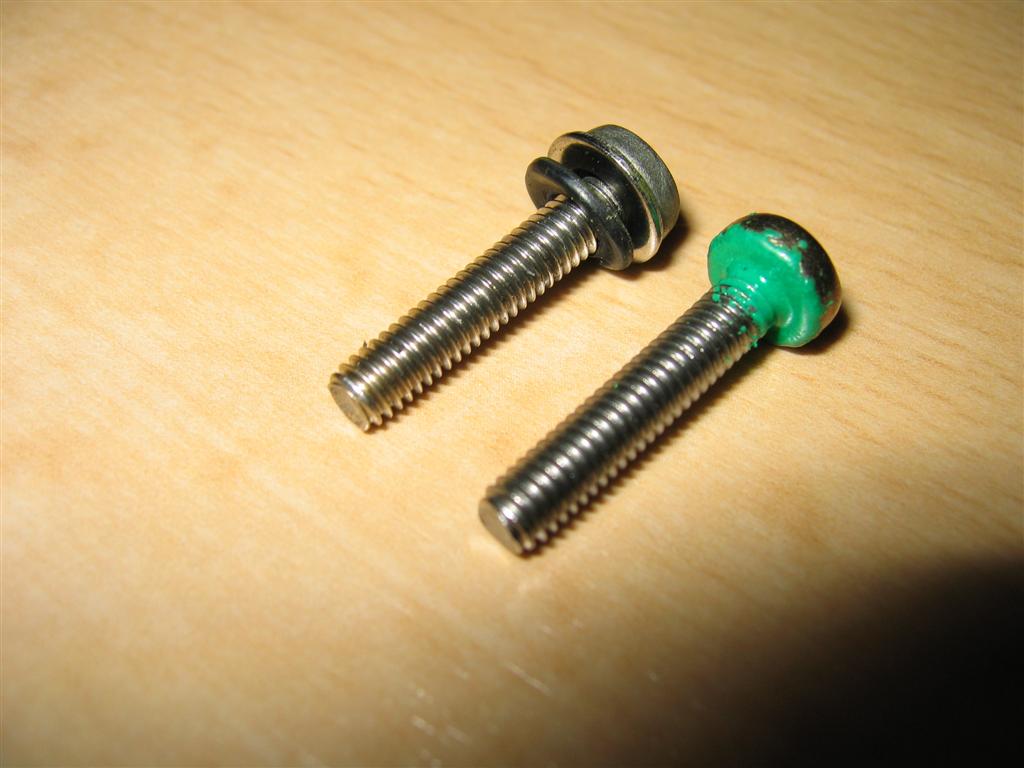 oben (alt): Schraube + Unterlegscheibe + Dichtungsgummi unten (neu): lediglich eine Schraube mit grünem Silikon Anhang 13580 Also muss die Unterlegscheibe unter die neue Schraube, richtig? |