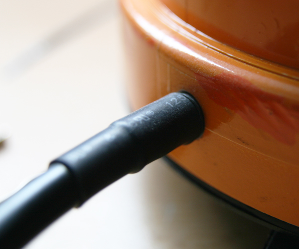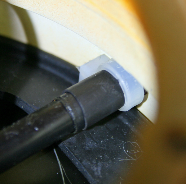 Das ist auch nur so bei der KL 700. Bei meiner KLJ 70 mit 3er Magnetplatte geht ein Spiralkabel mit Kabeldurchführung durch eben diese Bohrung an der Unterseite. |