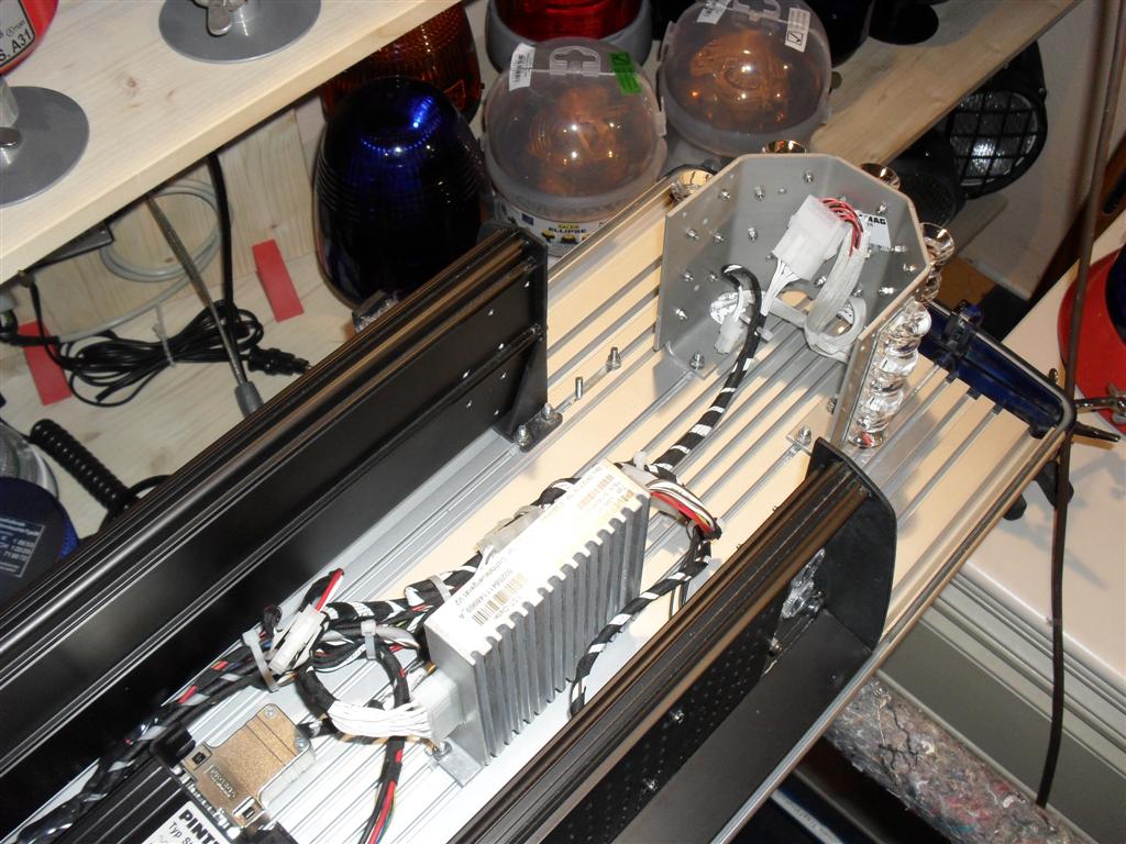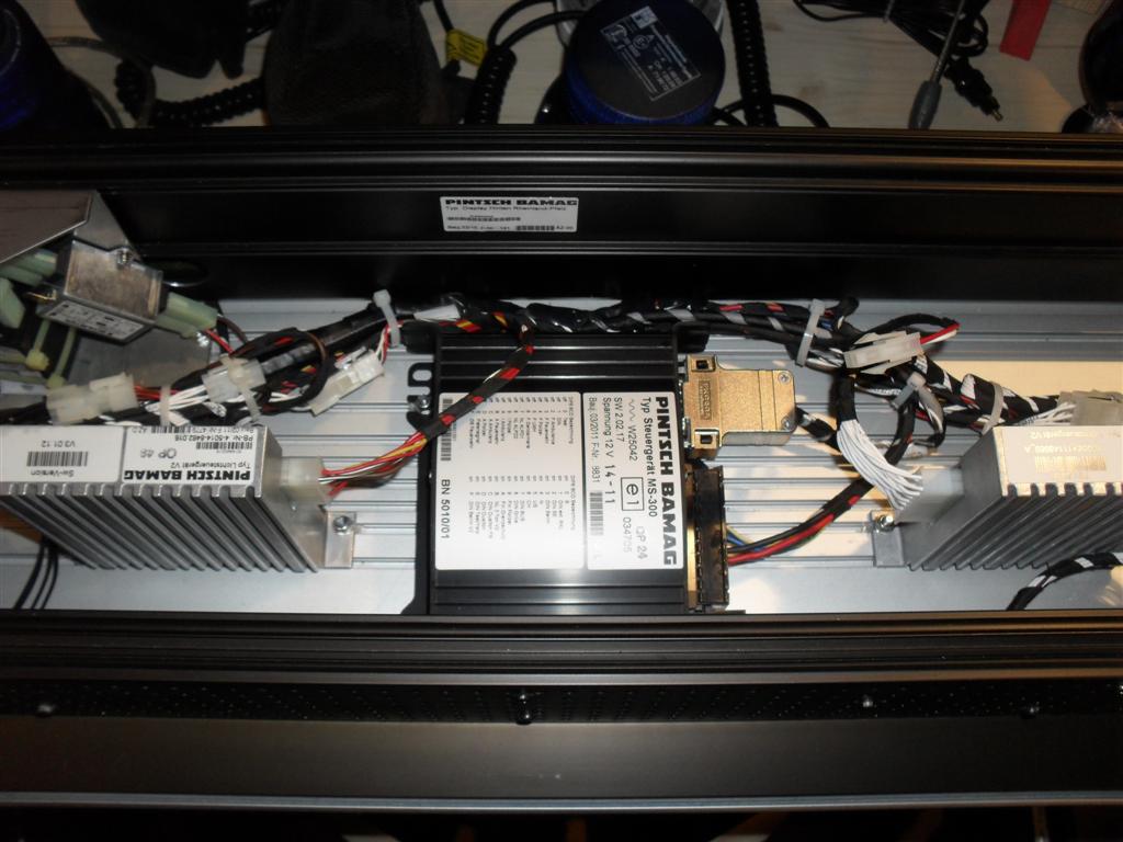Anhang 14544 Ein TOPas der Polizei Rheinland-Pfalz, Baujahr 2010 für VW 09. Somit handelt es sich um die (letzte) TOPas-Generation in Rheinland-Pfalz, die gerade durch die neuen Fahrzeuge mit ZIRKON abgelöst wurde. Montiert war der Balken auf einem VW Passat (wie diesem) und vorgesehen war er für den Einsatz auf Autobahnen oder in Dienstbereichen mit (mehrsprurigen) Kraftfahrstraßen. Er ist wie folgt ausgestattet: - 5 x 3 LED-Kennleuchtenmodule mit abgesetzter Steuerelektronik und manueller Nachtabsenkung, - MS-300 im Balken untergebracht, K-SR 300 abgesetzt montiert (bei mir sind es noch "normale" interne TOPas-LSP, die ich mit Widerständen gedrosselt extern montiert habe), - vorne und hinten Vollmatrix-Display, - vorne 6-fach LED-Arbeitsscheinwerfer, - vorne K-FS Hochleistungs-Frontblitz mit sechs LED, - Kunststoff-Schiene zur Infogeber-Montage auf dem Deckel (mit Überwachung durch Magnet) - KL-A-Dose. Angesteuert wird das ganze digital über ein BT-200. Hier ein Paar Bilder: Ein Kennleuchtenmodul, man sieht auch noch einen zusätzlichen, freien Stecker an den vermutlich die IR-Einheiten angeschlossen werden können. Anhang 14542 Innen ist sehr viel Platz und im Vergleich zur RTK 6 mit ihrer ZSE kommt man meinem Empfinden nach hier deutlich schneller und einfacher an die Komponenten ran. Anhang 14538 Links und rechts die Elektronik für die LED-Module, mittig die MS-300. Anhang 14543 Die KL-A-Vorrüstung mit entsprechender Beschaltung. Damit die rheinland-pfälzische Polizei ihre bisher verwendeten KL-A aus den RTK 4 und 6-Zeiten weiterverwenden kann, wurde hier das Hella-System verwendet (KL-A-Stange mit beidseitiger Buchse), während das eigentliche Pintsch-System ja eine Stange mit einseitigem Stecker und andersseitiger Buchse verwendet. Anhang 14541 Die Infogeber-Erkennung im Deckel. Anhang 14537 Der LED-ASW (echt brutal hell). Anhang 14532 Der LED-Hochleistungsfrontblitz. Wie auch beim BSF-N von Hella setzt Pintsch auf je hälftig klare und strukturierte Linsen. Im Vergleich zu Hella sind diese aber fest. Der KF-S wird manuel aktiviert und läuft dann zeitgleich mit der rechten KL. Anhang 14540 Die Aussage "brutal hell" trifft übrigens auf das gesamte Lichtsystem zu. Anhang 14539 Anhang 14533 Anhang 14545 Anhang 14536 Der Balken ist ingesamt in einem sehr guten Zustand. Schade, dass die TOPas jetzt mehr und mehr verschwinden. Meiner Meinung nach war das modulare System hinsichtlich frei wählbarer Längen, Austattungsvarianten (Lichtmodule, Tonmodule, Lautsprecher, analoge oder digitale Anteuerung) sehr benutzerfreundlich. Sogar der fahrzeugseitige Kabelbaum ist noch komplett mit allen Anschlüssen für Kamera, Aufnahmesystem etc. Hier ein paar Aufnahmen vom BT-200. Obwohl ich ja bekennender Wandel&Goltermann/Pintsch Bamag-Fan bin, finde ich ehrlich gesagt die Bedienung über die RTK 6-BE angenehmer (soweit ich als nicht-professioneller Anwender das beurteilen kann). Anhang 14546 Man hat links die für eine POL-BE üblichen Bedieneinrichtungen für "nur KL", "KL mit Klangfolgebereitschaft" und "Dauersignal". Wer BT110/120/121 kennt, kommt hiermit auch klar uns weiß dann auch, dass er die Stadt/Land-Umschaltung durch das Drücken der "KL mit Klangfolgebereitschaft"-Taste erreicht. Für die beiden Kennleuchten gibt es noch Leuchten zur Funktionskontrolle. Sind sie in Betrieb und hält man dann die "nur KL"-Taste gedrückt, wird die Nachtabsenkung aktiviert. Da sehe ich im meinem Kellerräumchen aber keinen nennenswerten Unterschied. Wenn die Nachtabsenkung aktiv ist, blinkt die "nur KL"-Taste, anstelle dauerhaft zu leuchten. Anhang 14535 Dann gibt es noch drei Funktionstasten plus einen Drehknopf, der ebenfalls Tastfunktion hat und somit die vierte Funktionstaste darstellt. Demnach sieht man in einem Displayfeld auch immer vier Auswahlmöglichkeiten, welche über eine der vier Funktionstasten (F1-F4) geschaltet werden können. Durch Drehen am Knopf gelangt man in Unterebenen, in denen man zum einen andere Matrix-Texte auswählen kann oder ins Menü gelangt. Ebenfalls kann man hier dann andere verbaute Komponenten (gelbe Heckwarner etc.) steuern. Das BT-200 bietet hierzu noch einige freie Anschlussmöglichkeiten. Im Display wird auch angezeigt, welchen Text die Matrix anzeigt und ob vorne und/oder hinten. Auch KL, K-FS, Infogeber etc. werden bei Funktion als entsprechende Symbole angezeigt. Anhang 14534 Hält man übrigens bei der RLP-Programmierung im Stand-By-Modus die Taste "Dauersignal" gedrückt, schalten sich die Kennleuchten und das Signal ein. |