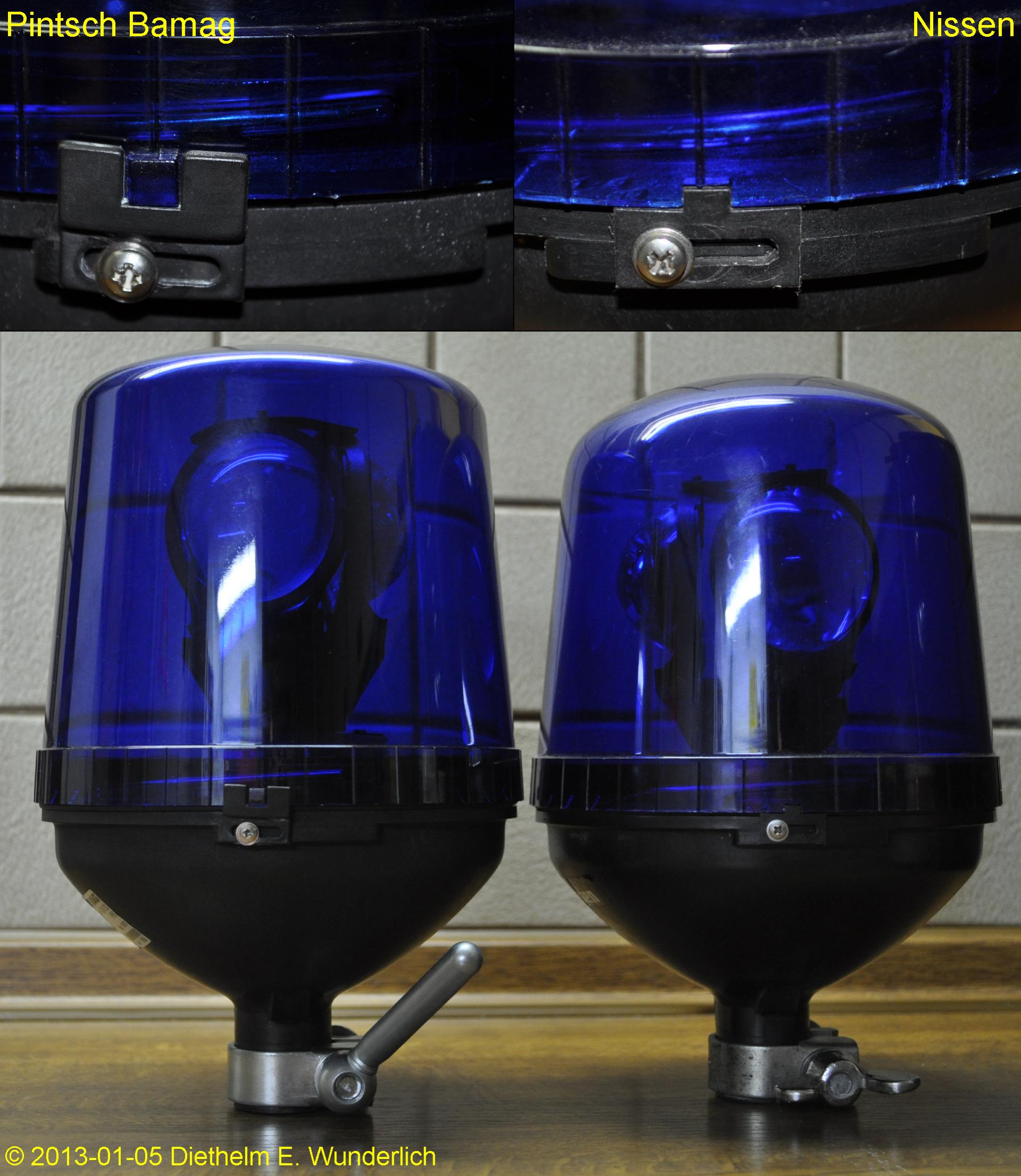 Die Drei-Linsen-Leuchten von Pintsch Bamag und Nissen unterscheiden sich nicht nur durch ihre Typenschilder.