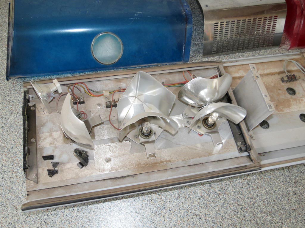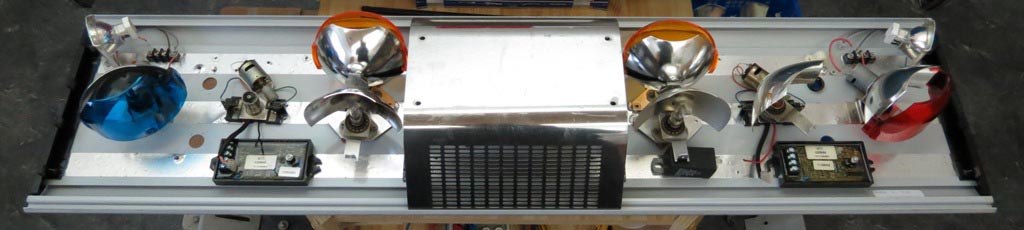 Anhang 16369 Nach diversen Stellproben bin ich letzten Endes doch wieder bei der ursprünglichen Aufteilung gelandet. Nur eben mit dem Unterschied, das die Spiegel durch die StingRay ersetzt werden. Anhang 16373 Anhang 16368 Aufbau/Technik: Als Grundträger dient ein straggepresstes Alu-Profil, welches grau beschichtet ist. Sämtliche Komponenten sind direkt auf den Grundträger montiert. Lediglich die Hauben und die LSP-Abdeckung sind indirekt mittels zusätzlicher Halter befestigt. Die Drehspiegel werden über ein Schneckengetriebe angetrieben. StingRay Drehspiegel: Die Positionsbestimmung erfolgt mittels zweier (rechts und links) Drahtbügel und eines am Zahnrad befindlichen Kontaktes. Erreicht der Drehspiegel nun eine der "Wendemarken" erhälte der Controller einen Minus-Impuls und ändert die Polarität am Motor, sodass sich die Drehrichtung ändert. Der Schwenkbereich beträgt nach vorne ca. 60° und nach hinten ca. 100°. |