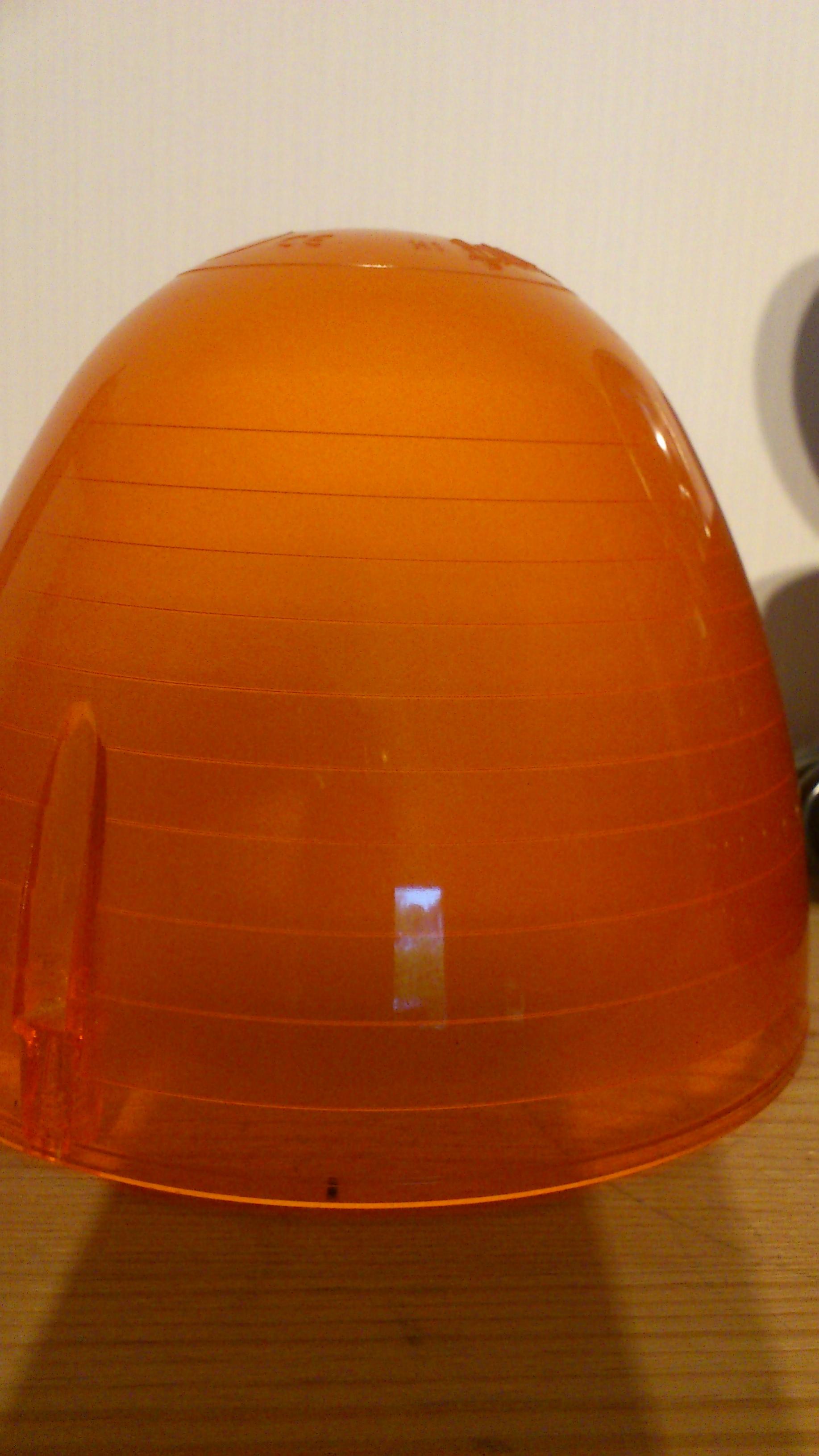 Edit: Links zum Hersteller weiter unten! Es handelt sich um eine orange Kennleuchte mit Drehspiegel und Magnet-Sauger. Anhang 16979 Die Kennleuchte sieht aus wie ein Ei im Becher. Mit drei Schrauben ist die Lichthaube im Gehäuse verschraubt. Eine horizontal verlaufende Riffelung (10 Ringe) bricht das Licht, zudem ist die Haube milchig trübe. Anhang 16980 Oben ist das Wort "TECNO" zu lesen. Weiter ist ein H1-Leuchtmittel abgebildet und die Zulassungsnummer "A1 E3 [im Kreis] 0054544 e24 [im Rechteck] 03 1206". Anhang 16981 An der Unterseite des Leuchtengehäuses ist ein Magnet-Sauger geschraubt. Anhang 16982 Der Drehspiegel der Leuchte dreht sich um ein feststehendes H1-Leuchtmittel. Anhang 16983 Hier ist das Leuchtengehäuse und die Grundplatte mit Motor und Drehspiegeleinheit abgebildet. Anhang 16984 Die Grundplatte ist dreieckig gestaltet und mit drei Schrauben befestigt. Anhang 16986 Der Motor treibt den Drehspiegel über einen breiten, schwarzen Treibriemen an. Die Leuchte ist dadurch angenehm leise. Anhang 16985 Das Signalbild dieser Leuchte ist gut wahrnehmbar und die Verarbeitung wirkt stimmig. Hersteller: pro.el. International Modell: TC-M |
