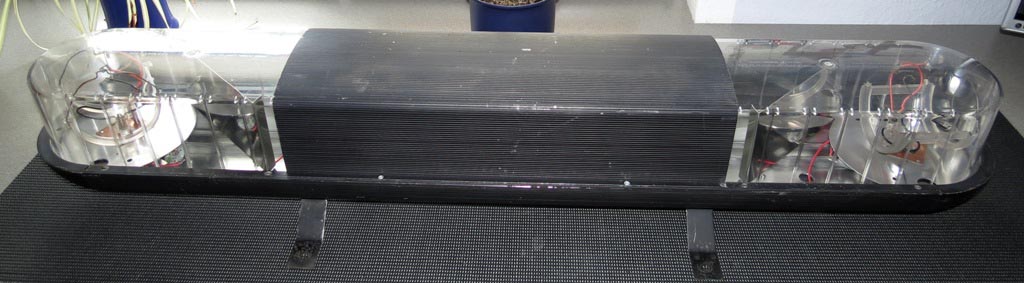 Anhang 17141 Der Zustand des Balkens ist, trotz der (schlechten) matt schwarzen Lackierung, relativ gut. Zwar fehlen ein paar Kleinigkeiten (Haltebügel, Leisten, etc.) und ein Lampenhalter wurde schon mal geklebt aber dafür sind die Hauben und die Endkappen intakt und brauchen nur etwas Pflege. Leider wurden die Hauben und die Mittelabdeckung mit Spax-Schrauben befestigt, sodass die originalen Gewinde etwas gelitten haben. :-( Aber zumindest stecken da keine Schraubenreste drin ;-) Die verbauten Leuchten (GE 4449) sind nicht korrekt und wurden nachträglich (in eingebautem Zustand :grrr:) gefärbt. Anhang 17137 Ich habe mich zunächst darauf beschränkt den optischen Ist-Zustand zu erhalten. Lediglich die Hauben habe ich etwas poliert und dadurch vom Sprühnebel befreit. Ansonsten hab ich dem Balken eine gründliche Reinigung zu teil werden lassen und hab die fehlenden Teile ergänzt bzw. die defekten ersetzt. Leider fehlen mir derzeit noch 4 blauen GE 4416 um den Balken zu komplettieren. :( Evtl. rüste ich den Balken mit gelben PAR36 Leuchten aus, um etwas Farbe ins Spiel zu bringen. Aufbau/Technik: Der Grundträger ist ein schweres, korrosionsbeständiges, Aluminium Strangpressprofil und bildet zusammen mit den Kunststoff-Endkappen eine Art Wanne. Anhang 17144 Die Auflageflächen der Hauben und der Mittelabdeckung sind von einem erhöhten (etwa 1cm) Rand umgeben, sodass Wasser, welches von den Hauben bzw. der Mittelabdeckung herunter läuft, eigentlich nicht weiter außen abfließen kann. Ist also die Abdichtung der Hauben/ der Mittelabdeckung i.O. bleibt das Wasser dort stehen und falls nicht läuft es zwangsläufig ins Inneren des Balkens. Aber anscheinend wurde der Abdichtung bei den Army-Version keine große Beachtung zu teil. Gibt nämlich keine. Es ist auch nicht erkannbar, das da mal eine war. Die Hauben werden von jeweils zwei Alu-Leisten gehalten. Die einteilige Mittelabdeckung wird mit 4 Schrauben am Grundträger fixiert. Die Lampenhalter sind Kunststoff und haben (anders als bei der Alu-Ausführung) zwischen den Aufbnahmepunkten der Haltebügel noch zusätzliche Streben. Jeder Dreher hat seinen eigenen Motor, welche über ein Schneckengetriebe die Drehachse antreibt. |