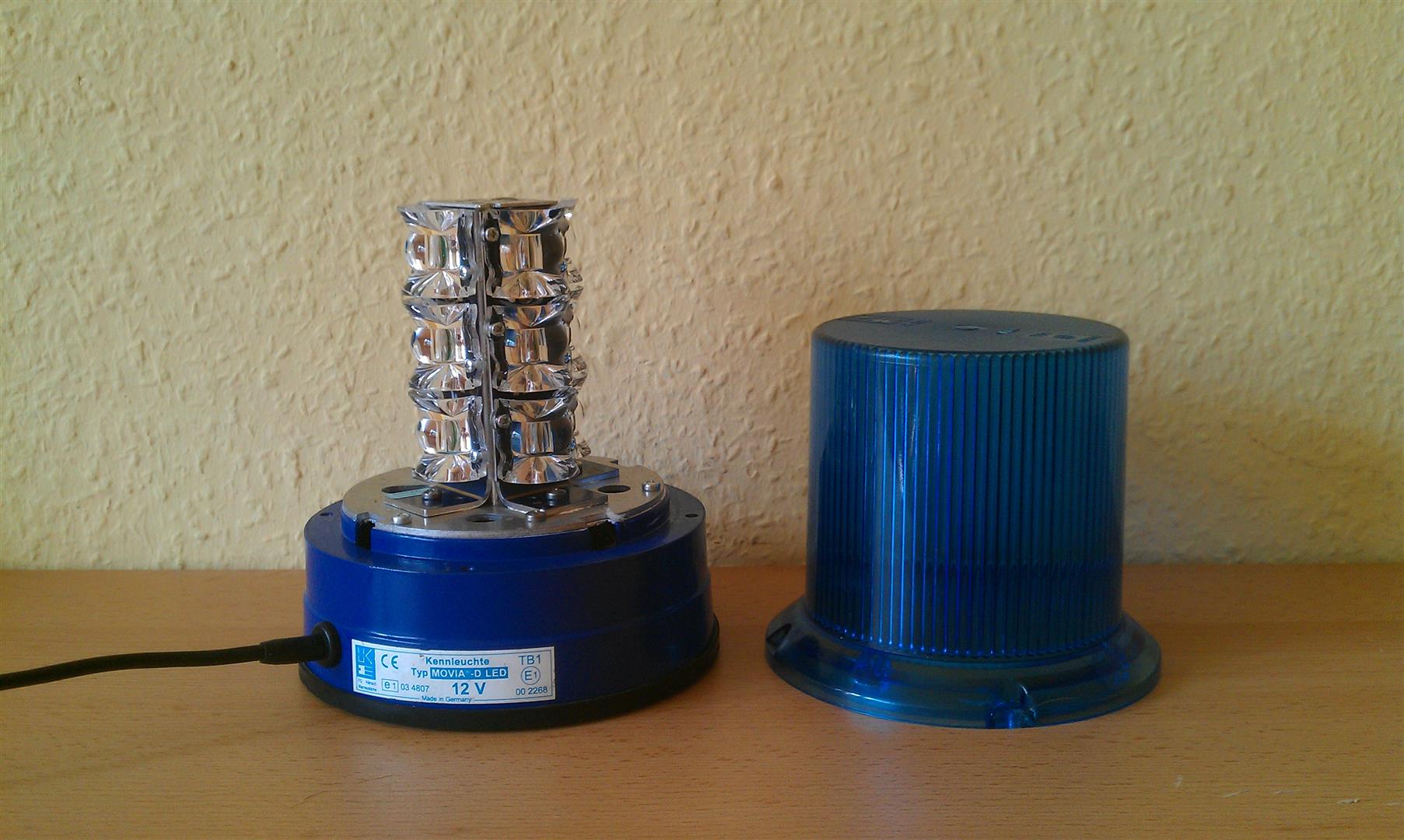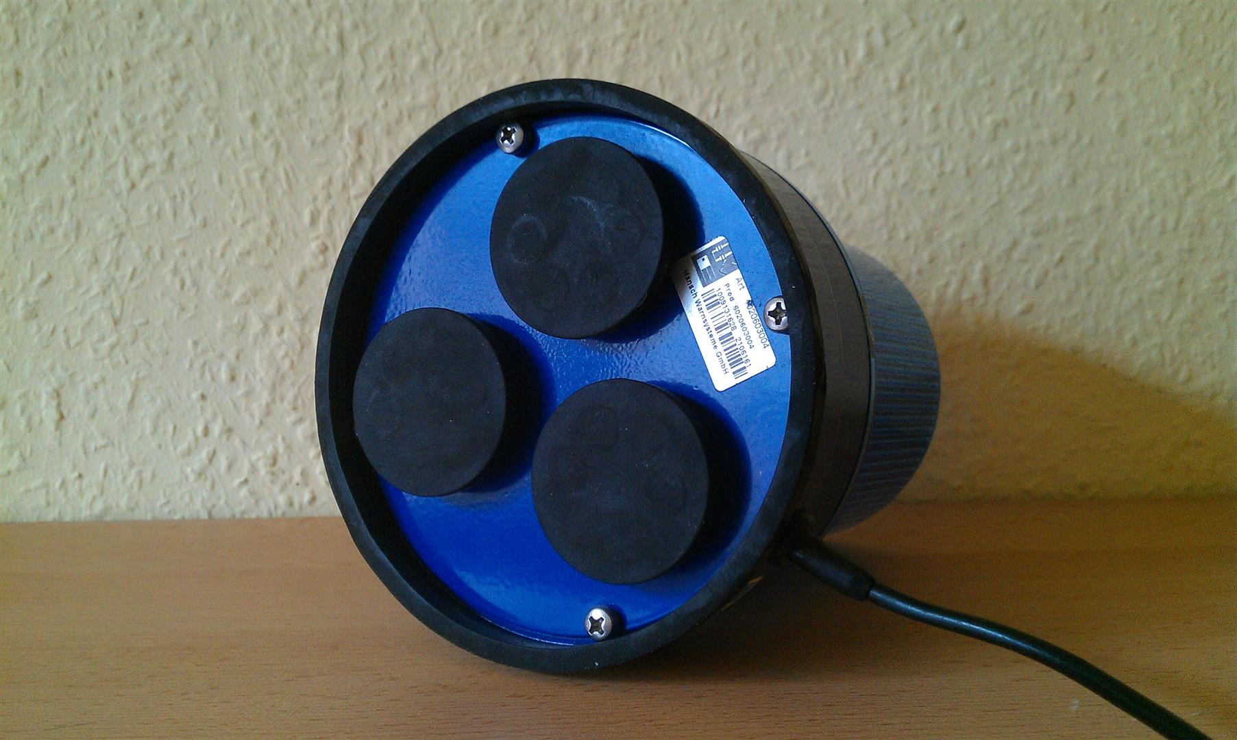 Hänsch Kennleuchten Hänsch Movia-D Bei der Movia D handelt es sich um eine kompakte Magnetkennleuchte aus dem Hause Hänsch. Unter der Lichthaube befindet sich eine Wendelblitzröhre, welche dank der integrierten Elektronik einen hellen Doppelblitz von sich gibt. Die Hänsch Typ 09 brauchte jedoch noch ein abgesetztes Steuergerät zum Erzeugen der Doppelblitze. Auf der Unterseite der Leuchte findet man drei gummierte Magnete. Öffnet man die Leuchte von unten durch abschrauben der Magnetplatte, so wird man auf der Oberseite der Leuchte das handschriftlich vermerkte Herstellungsdatum finden. Bei mir ist es der 7. September 2004, also ist sie etwas älter als neun Jahre. Anhang 21354 An der Leuchte befindet sich ein Spiralkabel mit langem Glattanteil und Zigarrettenanzünderstecker. Der lange Glattanteil dient dazu, die Türdichtung nicht zu beschädigen. Anhang 21356 Abschließend noch ein Bild vom Typenschild, auf welchem alle relevanten Zulassungsnummern zu finden sind. Das Typenschild wurde nicht aufwändig per Tampondruck aufgebracht, sondern es wurde einfach ein Aufkleber genommen. Anhang 21355 |