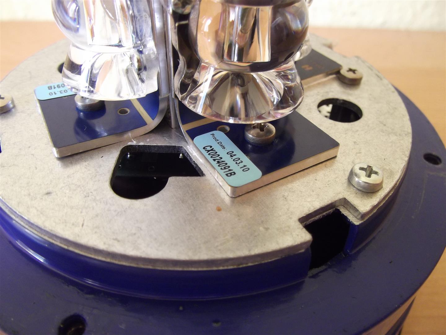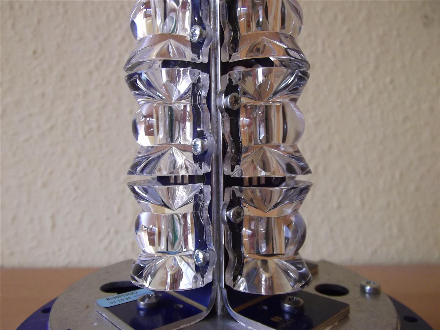 Der logische Nachfolger der allseits bekannten und beliebten Movia-D ist die Movia-D LED. Anhang 21357 Wie man sieht, ist die Movia-D LED optisch weitesgehend mit der Movia-D gleich. Es gibt allerdings doch ein paar Unterschiede. Als Leuchtmittel dient hier dann natürlich keine Wendelblitzröhre mehr, sondern 12 LED in blau mit vorgesetzter Streulinse. Im 90° Winkel sind je drei LED mit Streulinse übereinander angebracht. Das Ganze sieht dann nun wie folgt aus. Anhang 21361 Auf diesem Bild erkennt rechts man die LED Haube. Es sind im Gegensatz zur alten Movia-D nurnoch senkrechte Riffelungen da, die das Licht nochmals brechen und streuen. Da die LED blau sind, hat die Movia-D LED eine etwas hellere Haube als ihr Vorgänger. Anhang 21360 Hier eine Aufnahme der Linsen und deren Anbringung. Sie werden, wie auch beim TOPas LED von Pintsch Bamag, verschraubt. Anhang 21362 Das Herstellungsdatum der LED Platinen ist der 4. März 2010. Um diesen Zeitraum wurde dann wohl auch der Rest der Leuchte zusammengebaut. Anhang 21365 Aufgrund des geringen Stromverbrauchs durch LED Technik fällt natürlich das Spiralkabel dünner aus. Das hat Vor- und Nachteile. Einerseits beschädigt es die Türdichtungen am Fahrzeug weniger, andererseits leiert es dadurch auch leider schneller aus. Die Stromversorgung erfolgt über einen Metallwinkelstecker von Lemo, Modell FLA 2S. Anhang 21363 Das Typenschild der Leuchte hat sich zum Vorgänger verständlicherweise geändert. Anhang 21366 Die Magnetbefestigung jedoch, besteht immernoch aus drei gummierten Magneten. Anhang 21364 Abschließend gibt es noch ein Bild von Movia-D und Movia-D LED zusammen. Hier erkennt man die Unterschiede der Hauben sehr gut. Anhang 21367 |