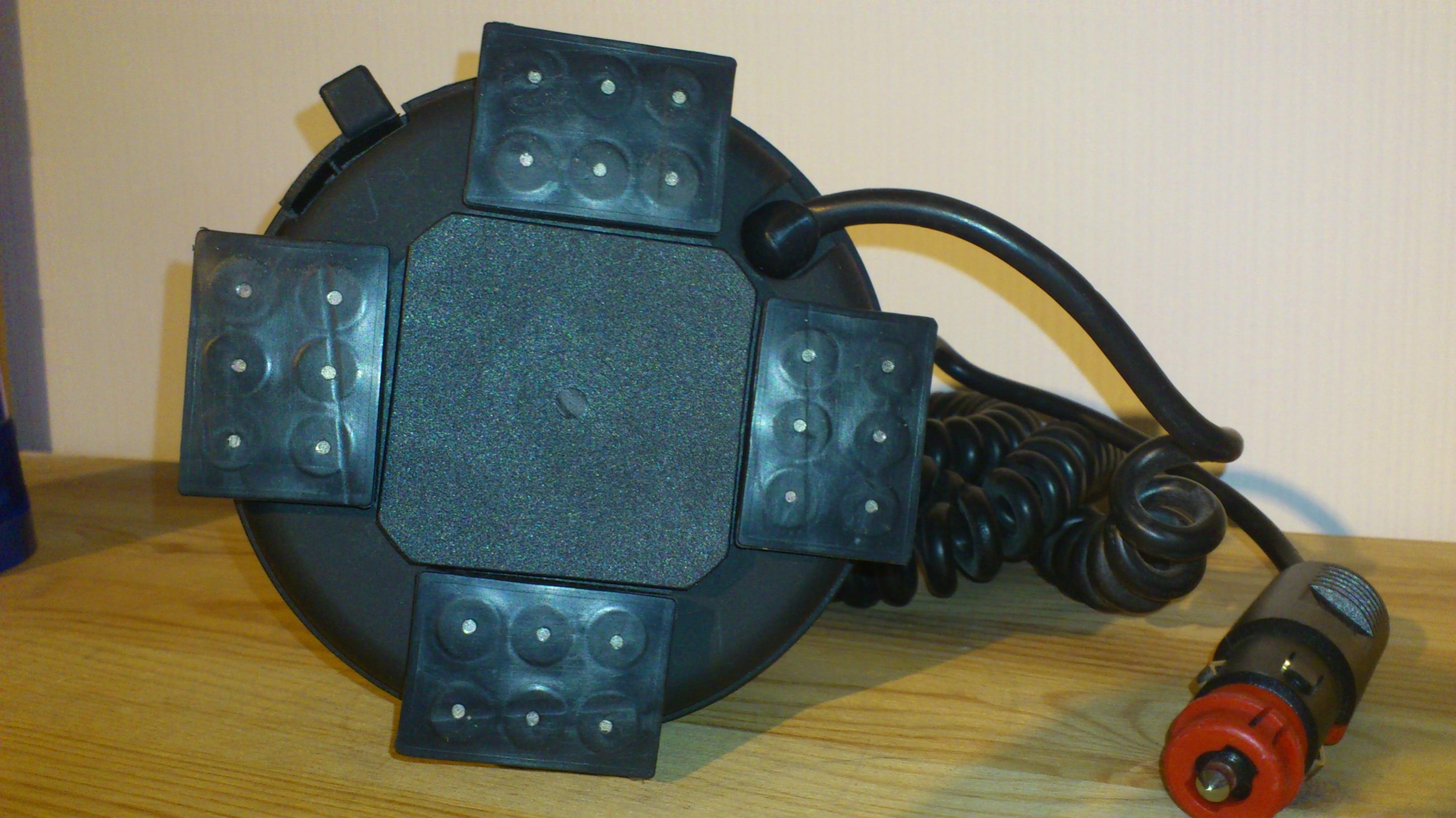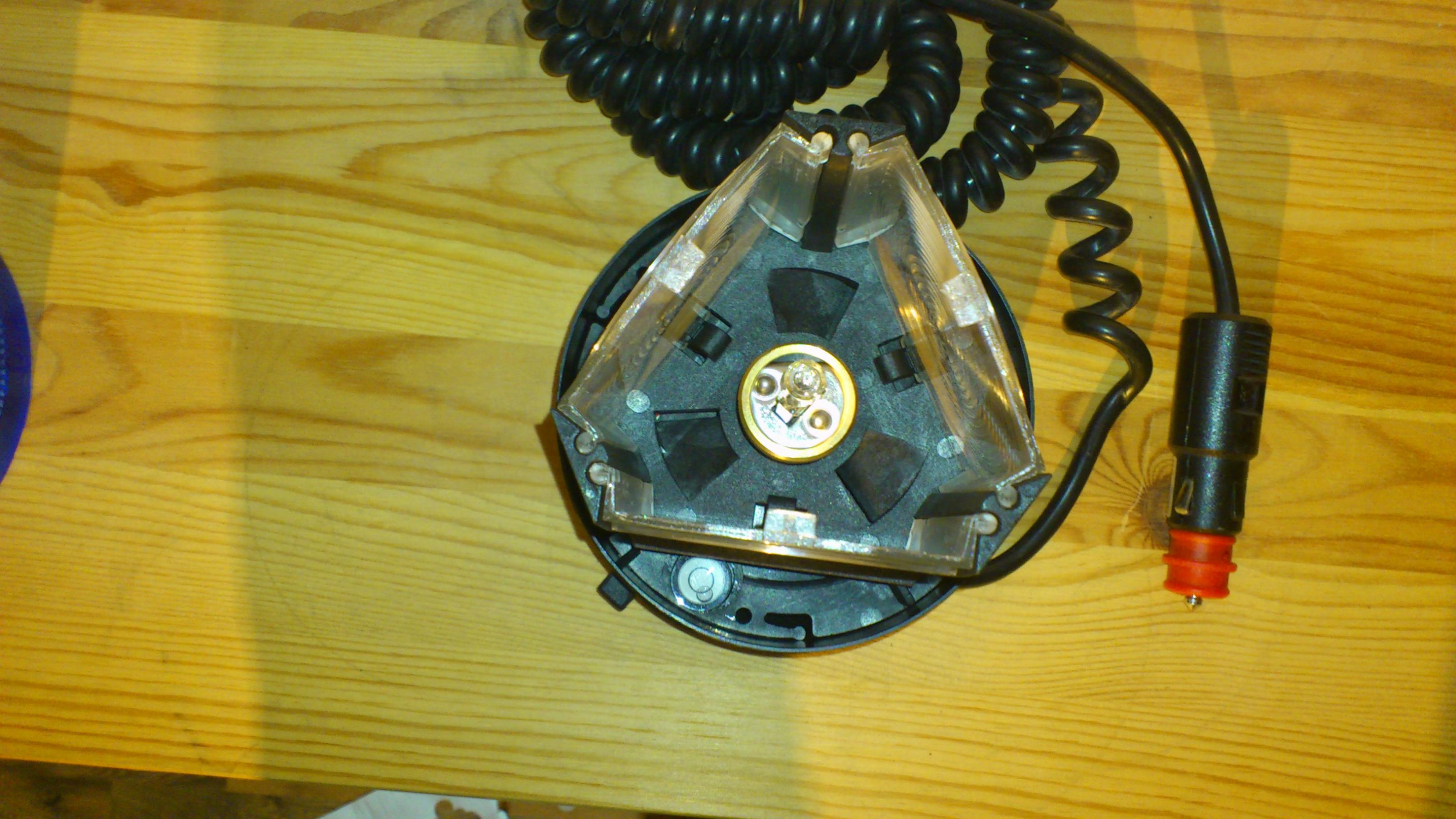 Die Leuchte ist sehr handlich (131 mm im Durchmesser und 160 mm hoch) und mit ca. 765 Gramm sehr leicht. Anhang 17675 Statt eines Drehspiegels wird das Licht bei der MTO über drei Linsen abgegeben, die sich zu einem Dreieck angeordnet um das feststehende Leuchtmittel drehen. Die Linsen werden über einen Riemen angetrieben, so dass die MTO sehr angenehm leise ist. Anhang 17669 Durch die Anordnung der Linsen ist nur 1/3 der Motordrehzahl erforderlich, die eine Drehspiegelleuchte antreibt. Hier ist die Anordnung der Linsen und auch die Libelle erkennbar, die anzeigt, ob die MTO ohne Fehlweisung steht: Befindet sich die Luftblase innerhalb des schwarzen Ringes, steht die MTO gerade. Anhang 17671 Um das Leuchtmittel zu wechseln, lassen sich die Linsen aus ihren Halterahmen nach oben heraus ziehen. Am Gehäuse ist der Gummiring erkennbar, der die Haube gegen das Gehäuse abdichtet. Anhang 17672 Die Stromversorgung der MTO erfolgt über ein Spiralkabel (unausgezogen 2 Meter) mit einem Universal-Stecker. Der Stecker verfügt über eine 8 Ampere Sicherung und eine grüne LED, die bei vorhandener Stromversorgung leuchtet. Anhang 17674 Das Typenschild der MTO ist auf dem Gehäuse angebracht und auch bei aufgesetzter Lichthaube (wenn auch schlecht) lesbar. Der "S-Nr. 002 282 700-651" ist zu entnehmen, dass es sich bei dieser MTO um ein 12 Volt Modell mit oranger Lichthaube und einem (ausgezogen) 5 Meter langen Spiralkabel handelt. Weiter ist auf dem Bild der Hebel der Haubenarretierung erkennbar, die ein versehentliches Lösen der Lichthaube verhindern soll. Anhang 17670 Die MTO wird von vier eckigen Magneten auf Stahldächern und anderen geeigneten Unterlagen gehalten, lt. Hersteller beträgt die zulässige Höchstgeschwindigkeit 250 km/h. Anhang 17673 Meine MTO habe ich hier im Forum mit einer blauen Ersatzlichthaube erworben. An dieser Stelle noch einmal Dank an Roland für die reibungslose Abwicklung! Anhang 17668 Die MTO ist eine der Leuchten, die ich seit längerem auf meiner "Must have Liste" hatte. Sie ist angenehm leise und handlich. Mit ihrer Lichttechnik erzeugt sie ein weithin sehr gut wahrnehmbares und ruhiges Signal, jedoch ist der Hell-/Dunkel-Kontrast im Nahbereich etwas zu kurz. |