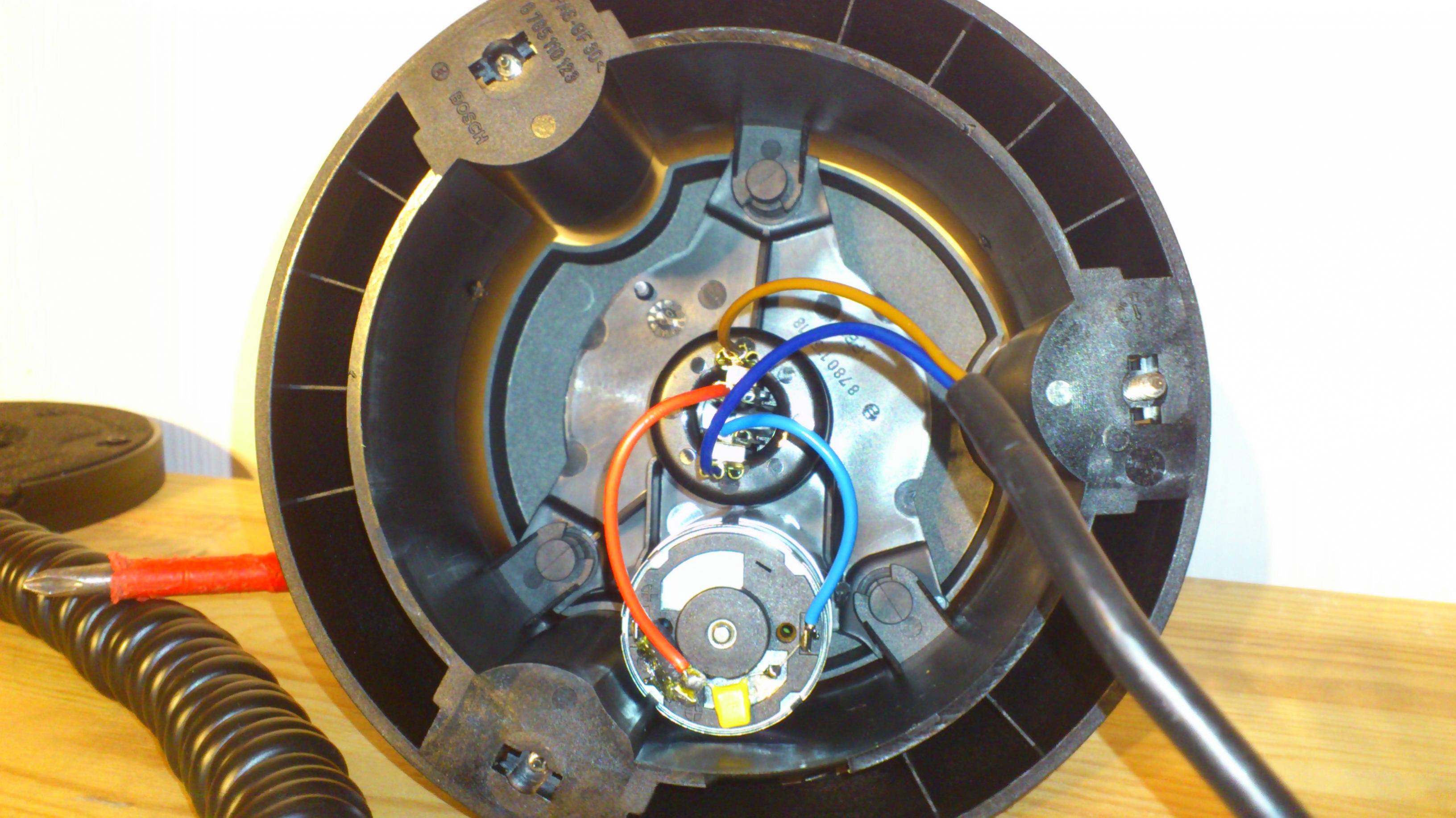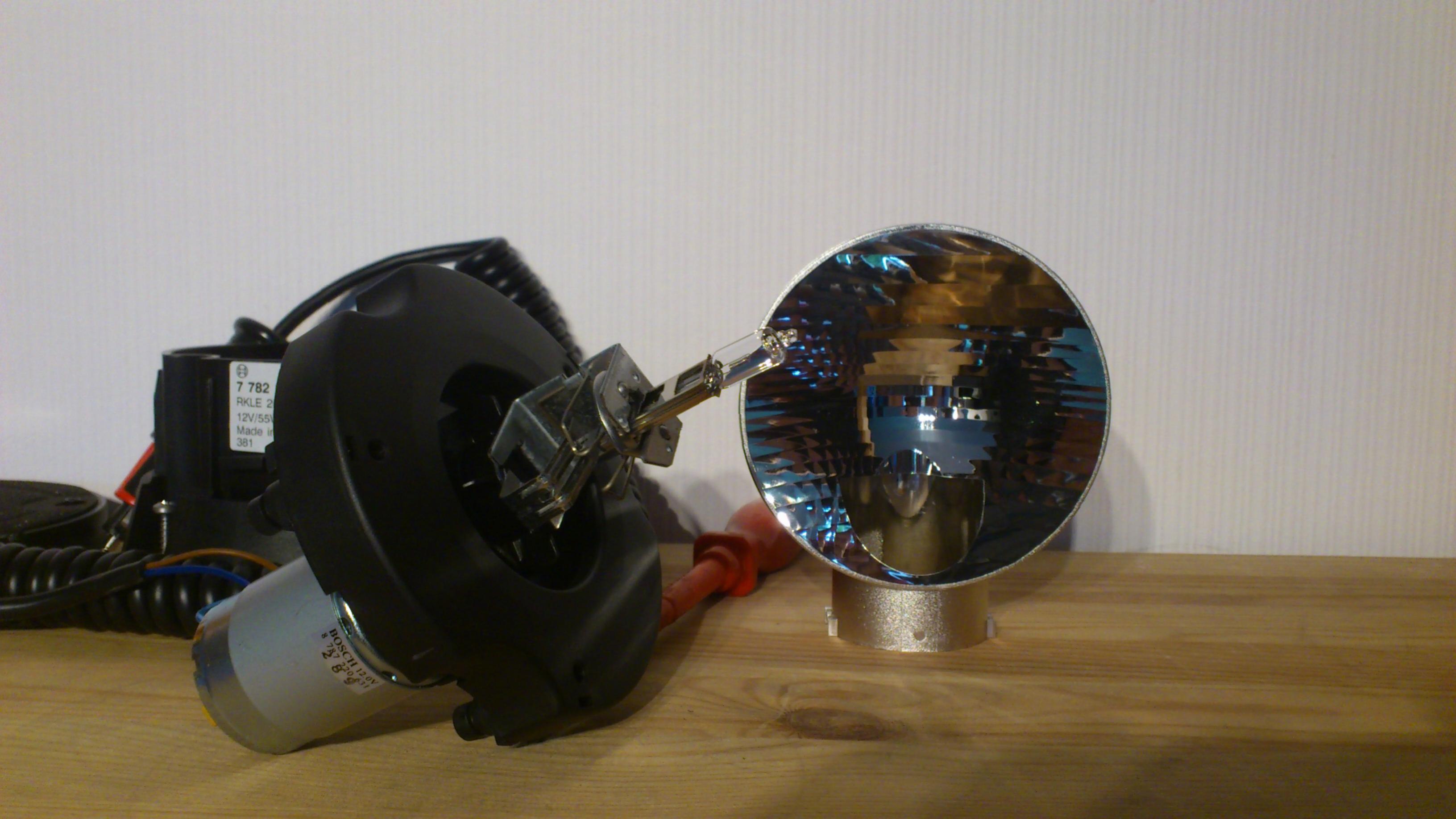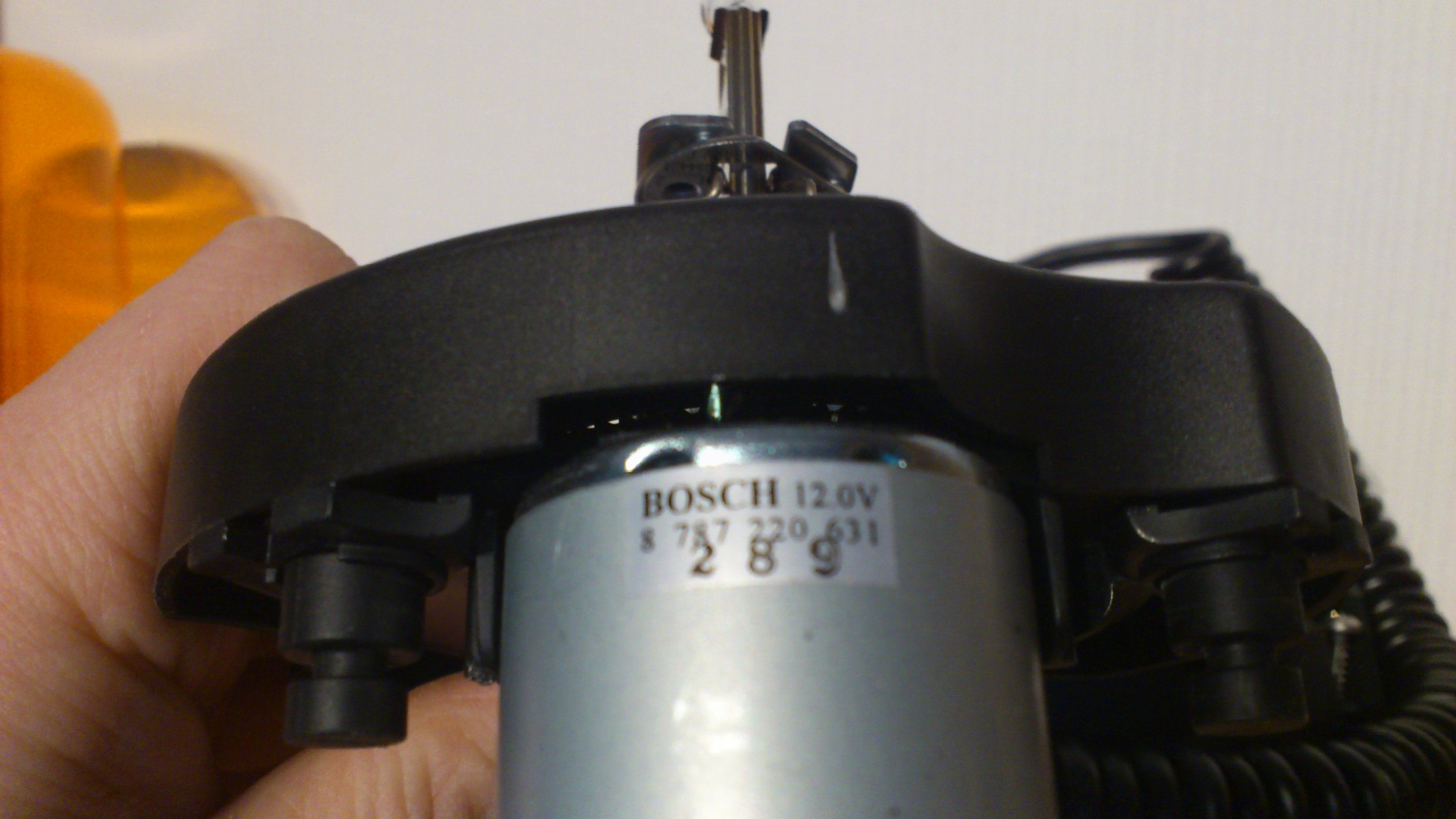 Die Magnetversion ist ca. 21 cm hoch und misst im Durchmesser ca. 15 cm am Magnetfuß. Anhang 18236 Die Ausführung mit Magnetbefestigung wird über ein (unausgezogen) ca. 45 cm langes Spiralkabel mit Universal-Stecker mit Strom versorgt. Der Stecker gleicht denen von Sirena-Leuchten. Die Lichthaube ist orange und ohne Optik, o.ä.. Anhang 18238 Die Unterseite des Magnetfußes ist lackschonend kunststoffüberzogen, darunter sind sechs sternförmig angeordnete Magneten erkennbar, die die Leuchte lt. Herstellerangaben bis zu einer Geschwindigkeit von 250 km/h sicher auf Stahldächern und anderen geeigneten Unterlagen halten. Anhang 18237 Das Typenschild enthält alle zulassungsrelevanten Angaben zur Leuchte und ist als Aufkleber ausgestaltet. Es ist auch bei aufgesetzter Lichthaube lesbar. Auf der Oberseite der Lichthaube finden sich die Zulassungen sowohl für die orange, als auch der blauen Ausführung wieder. Anhang 18239 Der Drehspiegel ist aus Kunststoff und dreht sich um eine feststehenden H1-Glühlampe. Auf dem Bild ist der Spiegel so gedreht, dass ein Wechsel des Leuchtmittels möglich ist. Anhang 18240 Anhang 18241 Der Spiegel ist als Stufenspiegel gestaltet und umschließt das Leuchtmittel vollständig, so dass ein scharfer Hell-/Dunkelkontrast entsteht. Anhang 18242 Um einen Blick auf die Technik und das Innenleben der Leuchte zu werfen, muss die Magnetplatte - mittels dreier Schrauben (120° Lochabstand) am Leuchtengehäuse befestigt - entfernt werden. Dazu lassen sich die drei Kunststoffblenden darüber entfernen. Anhang 18243 Blick auf den Motor und die Grundplatte der Kennleuchte. Die Grundplatte ist mit drei Gummistiften am Leuchtengehäuse befestigt, so dass die Leuchte im Betrieb annähernd schwingungsfrei arbeitet. Außerdem ist erkennbar, dass das Spiralkabel über keine Zugentlastung verfügt, sondern nur zwischen Leuchtengehäuse und Magnetplatte eingeklemmt ist. Anhang 18244 Der Blick auf den eigentlichen Antrieb bleibt verborgen, da ich keine Möglichkeit fand, die Leuchte weiter schadlos(!) zu zerlegen. Erkennbar ist jedoch (auf dem Bild leider kaum), dass am Motor ein metallisches Zahnrad sitzt, das einen Kunststoffzahnkranz an der Unterseite des sich drehenden Teils antreibt. Anhang 18245 Gruppenbild der für diese Dokumenatation zerlegten Teile. Der Drehspiegel lässt sich übrigens mit etwas Gefühl entfernen. Die Bosch RKLE 200 mit Magnetbefestigung macht einen soliden Eindruck und ist im Betrieb angenehm leise. Das Signalbild ist sehr homogen durch die Spiegelform mit einem sehr guten Hell-/Dunkelkontrast gut wahrzunehmen. Subjektiv empfunden steht sie einer Hella-Drehspiegelleuchte in nichts nach. |