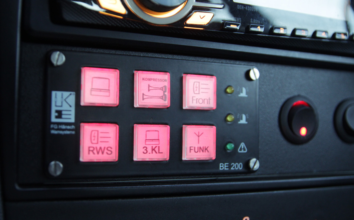 Da in meinem PKW, ein Opel Corsa Baujahr 2001 eine Teil meiner Sammlung steckt, möchte ich ihn gerne hier vorstellen. :) Nach diversen ein und umbauten ist mein Corsa nun endlich so wie ich ihn mir vorgestellt habe. Z.b. wurden im Zuge der umbauten ein ursprünglich verbautes RWS Typ 40 gegen das RWS Sputnik Nano getauscht, eine Typ 06 gegen die Comet M LED getauscht sowie meine ursprünglich verbauten, unbeleuchteten Einzelschalter gegen eine Hänsch BE 200 ausgetauscht. Anhang 18422 Die Blenden für die Schalter und nun auch die BE 200 wurden aus Alu mithilfe eines Lasers gefertigt und anschließend in Schwarz hochwertig lackiert. Da die BE alle Ausgänge gegen Masse schaltet und maximal 250 mA geschaltet werden können, mussten für alle Funktionen Relais eingebaut werden. Die Symbole wurden ebenfalls von mir gefertigt. So sind z.B. die Tasten Funk, 3.KL und RWS mit Photoshop entstanden da diese so von Hänsch nicht verfügbar sind. Die Symbole wurden mithilfe eines normalen Tintenstrahldruckers auf Spezialfolie gedruckt. Keine Angst eine Pressluftanlage ist nicht verbaut, die Taste 2 hat keinen Ausgang, es kann also auch keine Funktion geschaltet werden. :D Anhang 18425 Die Comet M LED und die Sputnik Nano waren OVP und unbenutzt. Die Comet kam sogar direkt von Hänsch. Speziell für die Nano's habe ich spezielle Winkel angefertigt, auch hier wieder mithilfe des Lasers: Anhang 18424 Anhang 18423 Anhang 18426 Anhang 18427 Zusätzlich sind noch drei Faltleitkegel verladen, nicht schlecht diese Dinger: Anhang 18428 Anhang 18429 In dem Fahrzeug stecken inzwischen sehr viele Arbeitsstunden und Herzblut. Ich hoffe euch gefällt meine Arbeit und die Fotos. Video: <iframe src="//www.youtube.com/embed/tATqg_mTCyw" allowfullscreen="" frameborder="0" height="315" width="560"></iframe> |