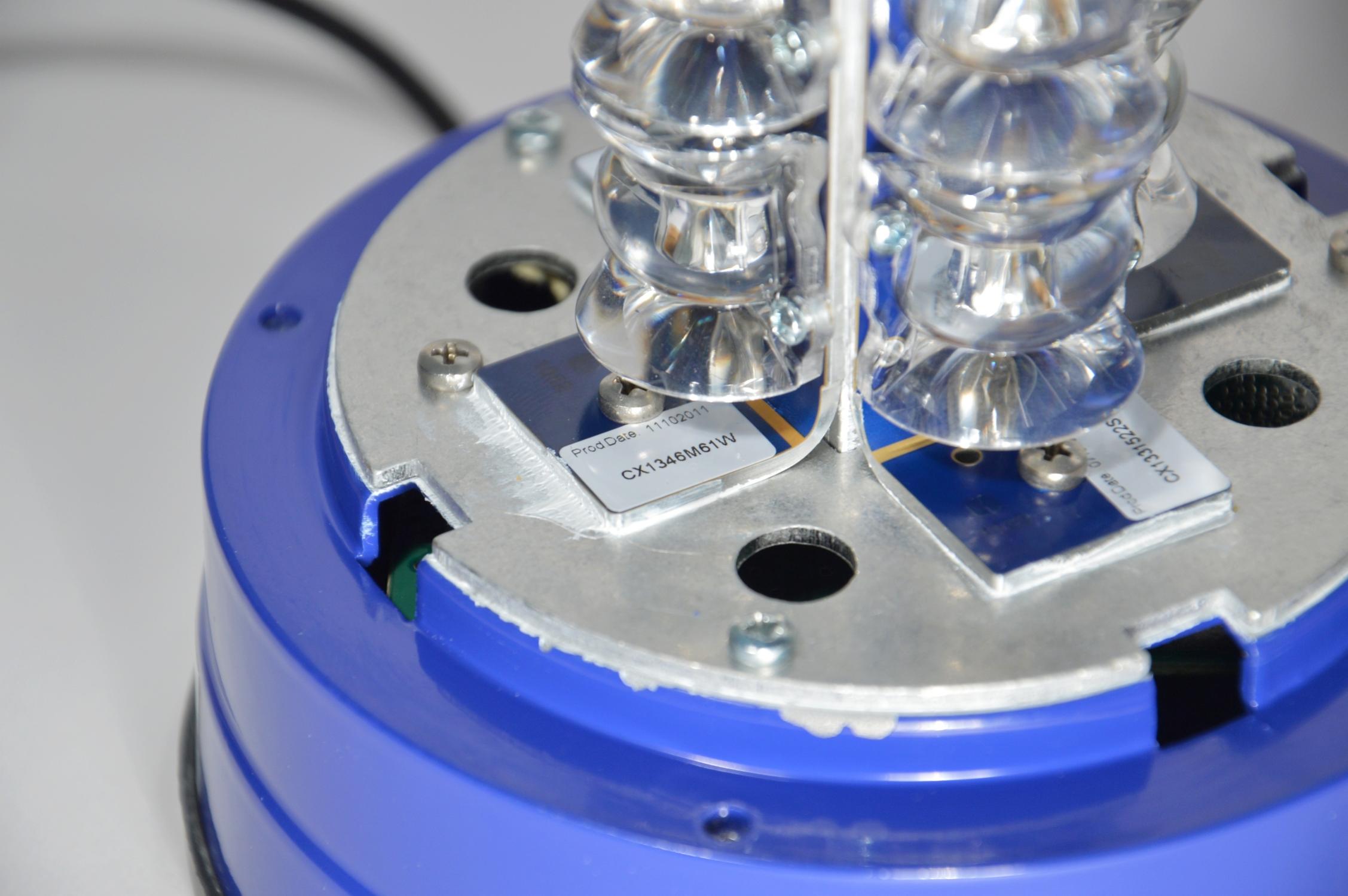 Anhang 19547 Anhang 19548 Spannung: 12 V Stromaufnahme: 2 A Maße (ØxH): 12,8 x 14,2 cm Bauform: C Mit der Movia-D LED hat Hänsch die Movia-Serie um eine LED-Kennleuchte erweitert. Von den äußeren Abmessungen her unterscheidet sie sich nicht von der Doppelblitzversion. Sockel und Magnete sind gleich geblieben, nur die Lichthaube wurde verändert. Statt in beide Ebenen muss das Licht nur mehr horizontal gebrochen werden, daher ist die Haube innen geriffelt und außen glatt. Das hat den Nachteil, dass die Kennleuchte etwas schwieriger handzuhaben ist. Hierbei ist die Haube der Movia-D weit überlegen, da dessen äußere Riffelungen die Leuchte sehr griffig macht. Anhang 19549 Auf der Oberseite der Haube befindet sich das Hänsch-Logo, das verwendete Material (Polykarbonat) und die Zulassungen. Anhang 19551 Nimmt man die Haube ab, wird der Blick auf die LEDs und die vorgeschraubten fresnelartigen Linsen frei. Je drei Leuchtdioden sind auf eine Platine gelötet, diese wiederum sitzt auf einem L-förmigen Stück Aluminium. Der LED-Turm ist mit einer Alu-Scheibe verschraubt, die wiederrum mit dem Sockel verbunden ist. Da die Wärme die die Leuchtdioden produzieren diese beschädigen können, befindet sich zwischen jedem thermischen Übergang Wärmeleitpaste. Anhang 19553 Hier eine Nahaufnahme einer LED, die schon von sich aus blaues Licht abstrahlt. Anhang 19552 Jede LED-Platte hat ihr eigenes Herstellungsdatum und Seriennummer. Drei Stück wurden am 11.10.2011 produziert, die vierte am 07.10.2011. Anhang 19554 Auf der Unterseite befinden sich die gewohnten Magnetsysteme sowie ein Aufkleber von Hänsch mit Seriennummer und Barcode. Anhang 19550 Schraubt man die Magnetplatte ab, auf der handschriftlich das Produktionsdatum vermerkt ist, sieht man die Steuerelektronik. Anhang 19555 Die Leitungen vom 10-Poligen Stecker führen hinauf in den Turm und dann zu jeder einzelnen LED. Der Name der Platine lautet "LEDBuck", sie wurde am 16.01.2010 hergestellt und ist Version 2.4 . Interessant ist auch, wie die Kabelsicherung realisiert wurde. Im inneren, des dünnen Spiralkabels (mit Glattanteil) befindet sich ein gelbes Seil. Dieses wurde dann einfach an einem Stück Epoxid festgeknotet. Anhang 19556 Von der Lichtleistung übertrifft die Movia-D LED ihren Vorgänger. Sie ist ein Stück heller, aber vorallem ist die Farbsättigung des Lichts sehr intensiv. Zusätzlich ist auch die leuchtende Fläche ein ganzes Stück größer, der Quadroblitz (1 längerer Lichtimpuls, 3 kurze) sehr auffällig. Anhang 19558 |