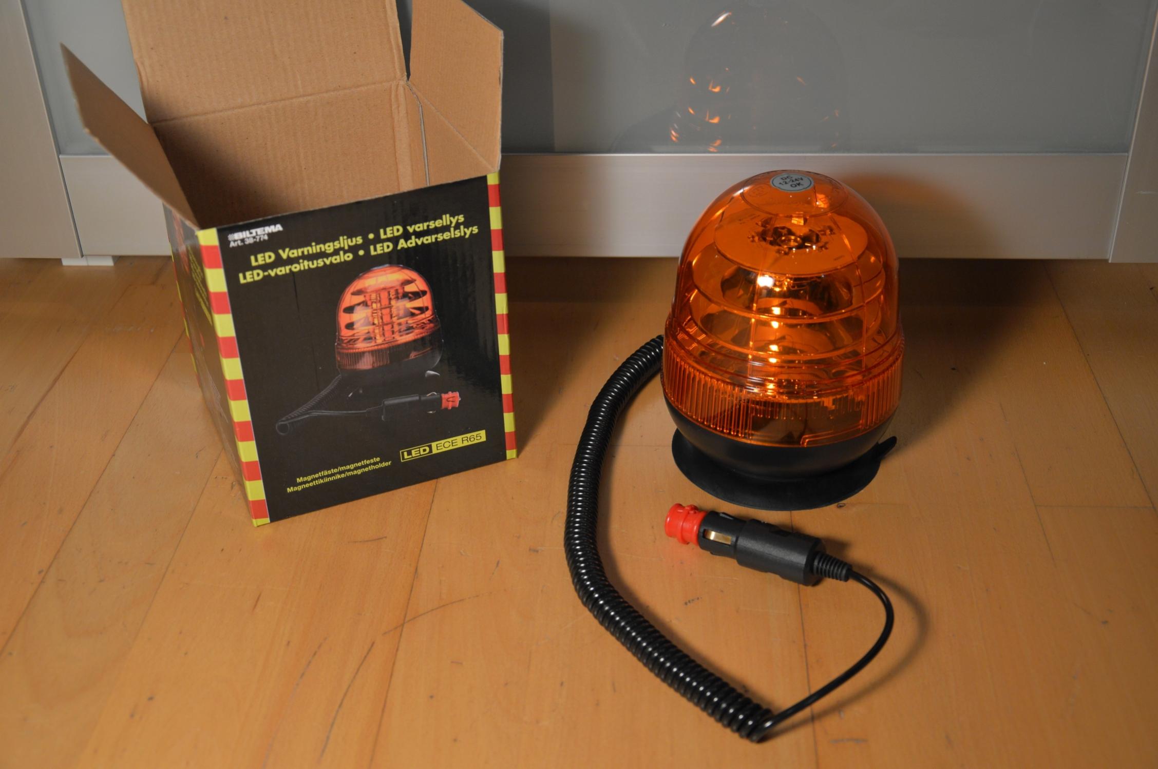 Anhang 20084 Anhang 20085 Spannung: 12-24 V Stromaufnahme: 0,9 A Maße (ØxH): 12,8 x 16,5 cm Bauform: C Diese Leuchte habe ich aus meinem letzten Schweden-Aufenthalt mitgebracht. Sie stammt aus einer Baumarktkette, welche neben dieser KL über ein erstaunlich großes Sortiment an Balken, Leuchten und Frontblitzern verfügt (kein China-Schrott wie bei uns, sondern alles mit Zulassung). Sie ist in allen gängigen Befestigungsvarianten erhältlich (Aufbau, Rohr und Magnet). Anhang 20077 Auf dem recht ansprechenden Karton sind die Eckdaten der Leuchte zu finden. Anhang 20078 Als erstes fällt auf, dass die Leuchte sehr handlich ist. Die Lichthaube besitzt keine Optik, jedoch findet man sechs Verstärkungsrippen. Durch eine Drehung gegen den Uhrzeigersinn kann sie abgenommen werden. Auf der Oberseite ist Folgendes zu lesen: E9 001525 LED 12V/24V CE NICAR TA1 Die Stromversorgung erfolgt über ein dünnes Spiralkabel mit einem Nachbau des allseits bekannten Steckers von ProCar. Anhang 20079 Für das Licht sorgen 18 Stück 3W-LEDs, es wird dann durch vier Spiegelplatten gebündelt. Durch diese Technik ist die Kennleuchte sehr tolerant gegenüber Missweisungen. Da die Platten aus Metall sind, werden sie auch als Kühlkörper verwendet. Anhang 20080 Am Dach wird die Leuchte mit einer Magnet-Saugnapf-Kombination gehalten. Überraschenderweise ist der Magnet kein einfacher Ringmagnet, sondern ein Neodym-Magnetsystem. Die Haftkraft ist gut, jedoch für schnelle Fahrten m.M.n. nicht zu empfehlen. Eine maximal zulässige Geschwindigkeit findet man nicht. Anhang 20082 Über DIP-Schalter kann man zwischen drei Blitzmustern wählen (Rundumsimulation, 6-fach-Blitz und Doppelblitz). Anhang 20083 Die Lichtleistung ist als gut zu bezeichnen, natürlich gibt es Helleres, aber jedoch auch weitaus schlechtere Leuchten mit Zulassung. Man muss auch bedenken, dass es sich hierbei um eine Low-Budget-Leuchte handelt. Für umgerechnet ca. 50 EUR erhält man eine ziemlich gut verarbeitete Kennleuchte mit ausreichender Warnwirkung für den Gelegenheitsanwender. |
