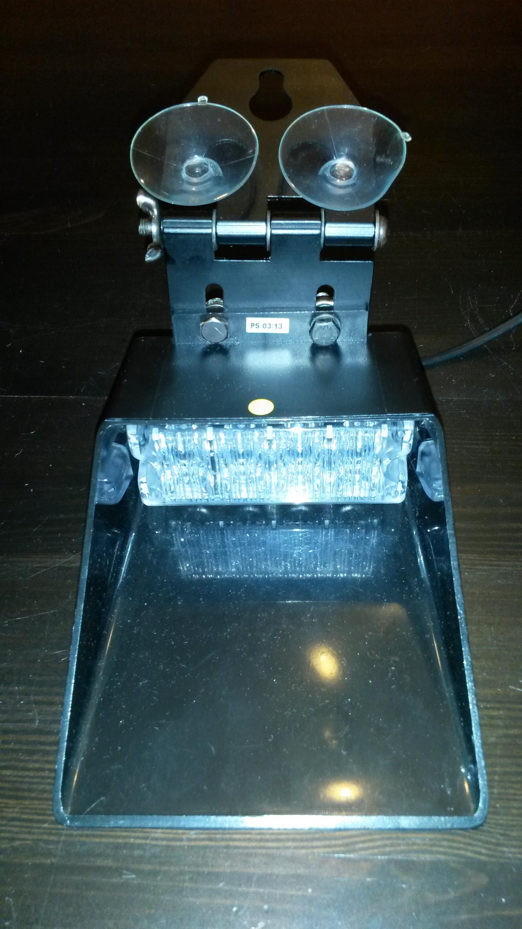 Es handelt sich dabei um das Modell 4-1058. Anhang 20764 Der Blitzer ist multivoltagefähig, als Betriebsspannung sind 12 - 24 Volt angegeben. Zudem ist lt. HAZTEC eine Zulassung nach ECE-R65 vorhanden. Die Stromversorgung erfolgt über ein glattes Kabel mit Schalter im Zigarettenanzünderstecker (wird noch ersetzt, ist leicht beschädigt), zur Auswahl der Blitzmuster wird an der Gehäuserückseite ein roter Knopf gedrückt. Insgesamt sind 18 verschiedene Blitzmuster auswählbar, jedes zweite Pattern ist Splitmodus. (Hier ein Video mit den möglichen Blitzmustern - das Video ist nicht von mir.) Ein angeschrägter Blendschutz ist Teil des Gehäuses. Die Befestigung an der Windschutzscheibe erfolgt über eine bewegliche Halterung und drei Saugnäpfe. Sie sind lediglich in entsprechende Aufnahmelöcher gesteckt und lassen sich ohne Aufwand entfernen. Anhang 20765 Das Typenschild ist bereits verblasst, jedoch sind die Angaben darauf noch einigermaßen lesbar. Es befindet sich an der Unterseite des Gehäuses. Anhang 20767 Auf der Lichtscheibe ist folgendes zu lesen. "XA1 000054 E11 [im Kreis] XB1 000055" Anhang 20766 Der Blitzer ist noch etwas lädiert - ein Saugnapf fehlt und eine Flügelmutter wurde vom Vorbesitzer durch eine selbstsichernde Mutter ersetzt, aber das Preis-Leistungsverhältis passte einfach. Das Licht des Blitzers ist als brutal hell zu bezeichnen, die auswählbaren Blitzmuster sind interessant und wirksam. Für meine Suche: Der Durchmesser der Saugnäpfe beträgt ca. 4,3 cm und der Knubbel oben ist ca. 1,4 cm im Durchmesser. Anhang 20768 Hier ein Bild der Aufnahme für die Saugnäpfe. Anhang 20769 |