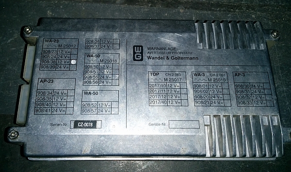 Ich bin neu hier und hätte mal ein paar Fragen. Ich habe die Tage die Überreste aus einem ausgesonderten Feuerwehrfahrzeug ausgebaut. 1 Warnanlage WA-23 1 WA Lautsprecher 4 dazugehörige Stecker 1 Dreh- Zugschalter Rundumkennleuchten sind nicht dabei, wären aber auch vorhanden. Einen Anschlussplan habe ich im Netz gefunden (http://www.oppermann-telekom.de/bild...3-kontakte.jpg) Sind das alle Teile die ich benötige, oder gehört noch mehr dazu ? Das soll im Winter von der Jugendfeuerwehr auf ihren Soundwagen verbaut werden :grinser: Anhang 23654Anhang 23655 |
