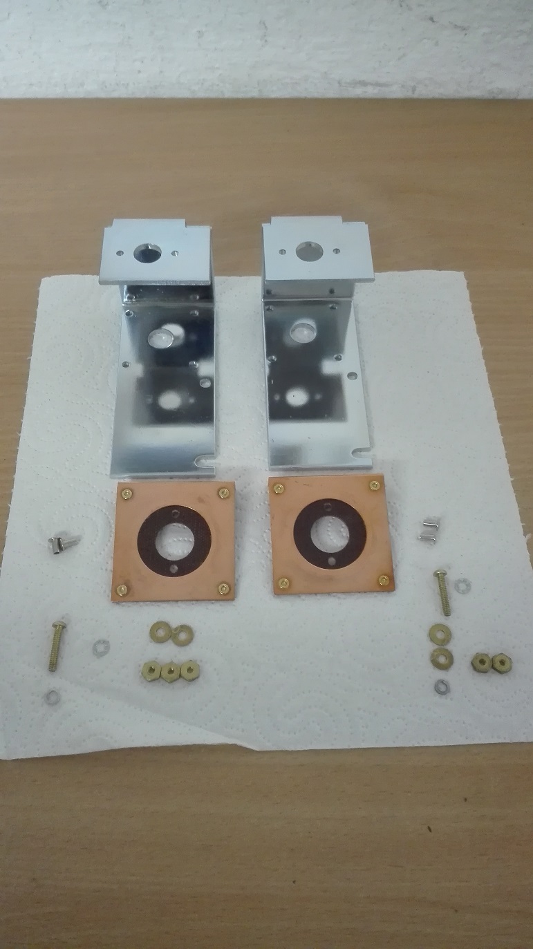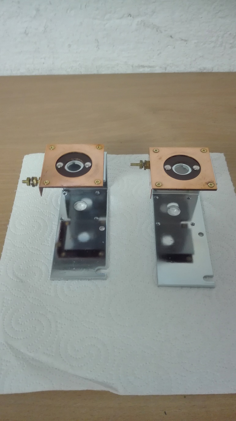 Die Motor- bzw. Wellenhalter sind fertig geworden. Die Halter wurden komplett geschliffen und neu verzinkt. Anhang 23986 Dann wurden die Schleifplatten, wieder mit Nieten, befestigt. Anhang 23987 Danach kamen noch die Schrauben, zur Kabelbefestigung, dran. Anhang 23988 |