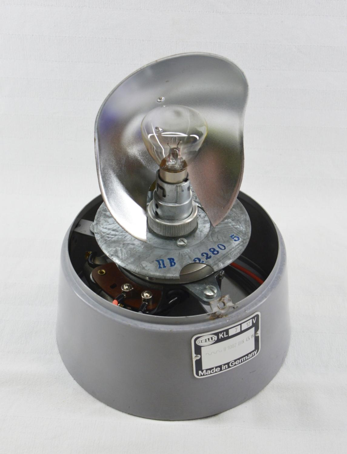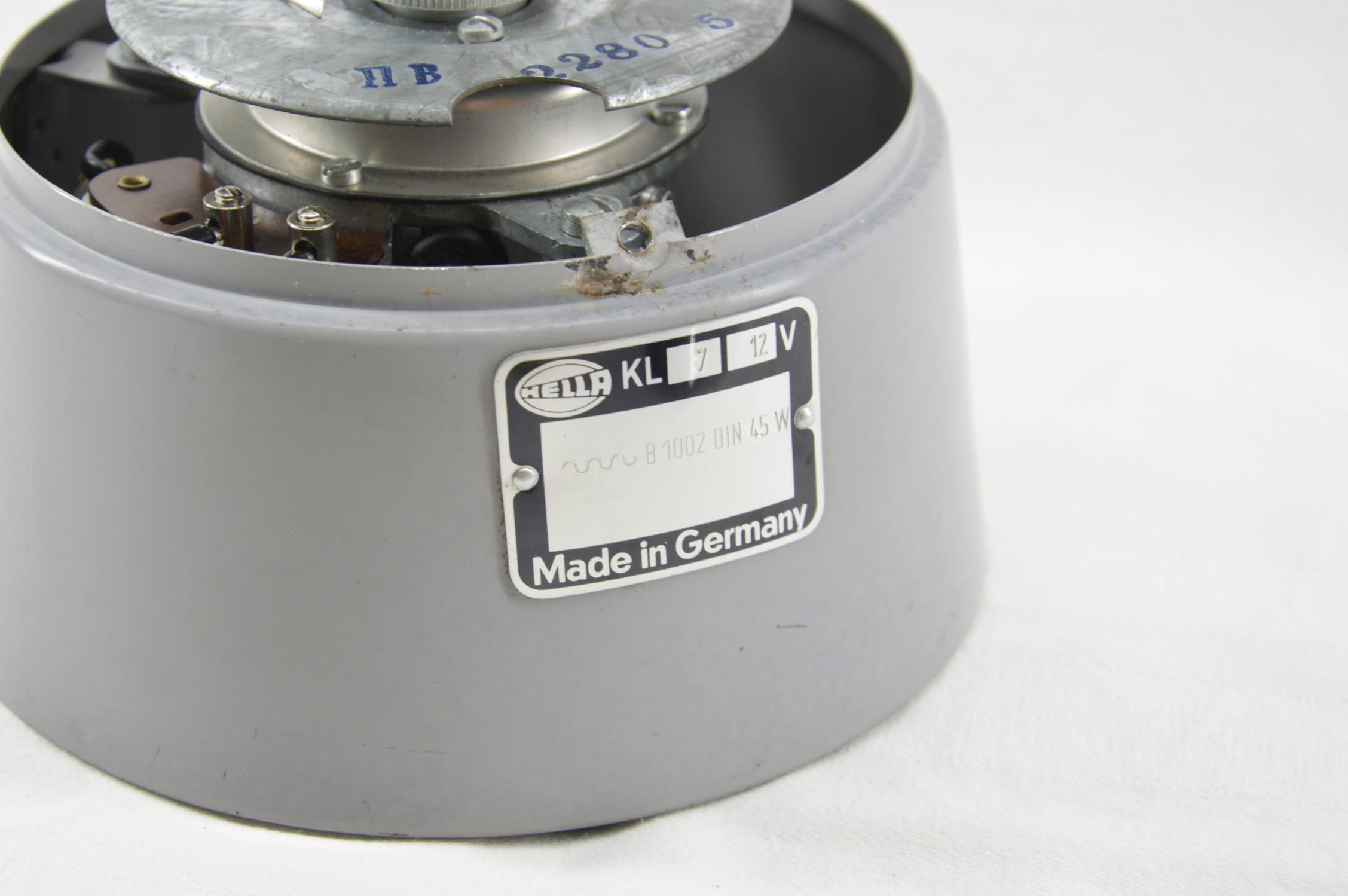 Es handelt sich um eine Hella KL 7 12V, welche noch nie verbaut war. Anhang 24028 Die Kennleuchte wurde ursprünglich als Ersatzteil für ein Fahrzeug einer Freiwilligen Feuerwehr angeschafft. Da sie bis Außerdienststellung des Wagens jedoch nicht verwendet wurde, bekam sie der Käufer des Fahrzeugs. Dieser bewahrte sie geschützt in einer Vitrine auf. Schlussendlich wurde die Leuchte in einem Hausflohmarkt verkauft (vermutl. Verlassenschaftsauflösung), wo ich sie durch Glück erstehen konnte. Anhang 24029 Mehr als einmal feucht abwischen hatte die Leuchte nicht notwendig, es sind nur vereinzelt kleine Kratzer zu sehen. Anhang 24030 Auch die jungfräulich anmutende originale 45 W-Glühlampe ist noch vorhanden. Anhang 24031 Ein weiteres Indiz, dass die Leuchte nie verbaut wurde, ist der Sockel, auf dessen Unterseite man keine Spuren von Schrauben oder sonstigen Befestigungsmitteln erkennen kann. Anhang 24032 Auch der Motor sieht sehr neu aus, abgesehen von ein bisschen Rost. Die Schleifkohlen sind noch relativ groß, und innerhalb der Motorabdeckung war kein Abrieb zu finden. Anhang 24033 Und natürlich ist sie, wie für Leuchten dieser Zeit typisch, relativ flott unterwegs. :D Anhang 24034 |
