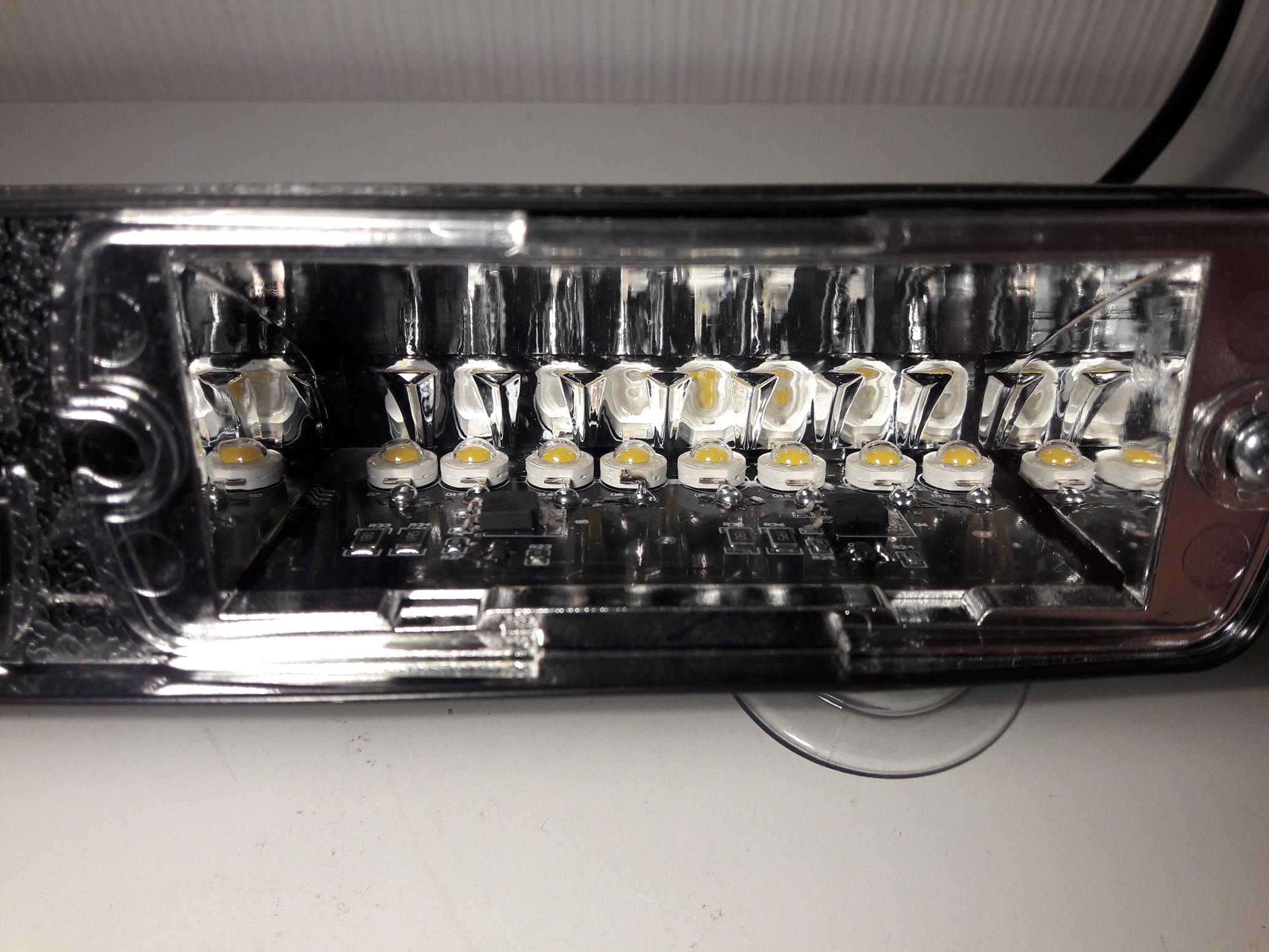 Anfang diesen Jahres gab es ihn im Super-Sonder-Rabatt-Schnäppchen-Verkauf für kleines Geld und da ich neugierig war kam er knapp eine Woche später aus dem Land des Lächelns zu mir. Anhang 25058 Der Blitzer hat eine Breite von ca. 22 cm, ist (mit Bügeln und Saugnäpfen) ca. 7 cm hoch uns (mit Blende) ca. 24 cm tief. Das Gewicht (incl. Kabel und Stecker) beläuft sich auf knappe 400 Gramm. Die Befestigung des Scheibenblitzers erfolgt über einen seitlich am Gehäuse verschraubten Bügel, in dem drei Saugnäpfe eingesteckt und geklemmt sind. Anhang 25060 An der Rückseite des Blitzers befindet sich ein roter Taster. Mit ihm lassen sich die Blitzmuster (18) auswählen. Hierzu wird der Taster im Betrieb gedrückt. Nach dem Ausschalten bleibt das zuletzt gewählte Blitzmuster gespeichert. Anhang 25061 Der Blendschutz ist lediglich an das Gehäuse gesteckt. Anhang 25065 Die Stromversorgung erfolgt über ein 178 cm langes, glattes Kabel mit Zigarettananzünderstecker. Der Stecker verfügt über einen roten Knopf, der als Ein-/Ausschalter dient. Weiter findet sich auf dem Stecker ein Aufkleber, der auf die bestandene Qualitätskontrolle im Dezember 2017 verweist. Anhang 25063 Auf dem Schalter (unbeleuchtet) ist "PUSH ON" zu lesen. Anhang 25064 Das hier vorgestellte Modell verfügt über zwei Module mit je acht LED zur Signalerzeugung, beide leuchten gelb. Anhang 25059 Hinter jeder Scheibe befinden sich acht LED auf einer Platine, die ihr Licht quer zur eigentlichen Abstahlrichtung abgeben. Durch eine verspiegelte Kurvenfläche und die verspiegelten Seiten der Lichtmodule wird das Signal durch die Scheiben und damit nach vorne abgelenkt. Anhang 25067 Auf der Oberseite des Gehäuses befinden sich Schlitze, die der Kühlung und Belüftung des Innenlebens dienen. Auch ist hier ein Warnhinweis aufgeklebt. Anhang 25062 Die Leuchtkraft dieses Scheibenblitzers würde ich mit "ausreichend" bewerten. Die Blitzmuster sind mannigfaltig und bieten für jeden Geschmack etwas. Angenehm empfand ich das völlige Fehlen von Geruchsbildung nach dem ersten Einschalten und längerem Betrieb. Für kleines Geld ist der "AMBOTHER de2hits13513 16 LED" ein nettes Spielzeug (auf die fehlenden Zulassungen brauche ich an dieser Stelle wohl kaum hinweisen). |