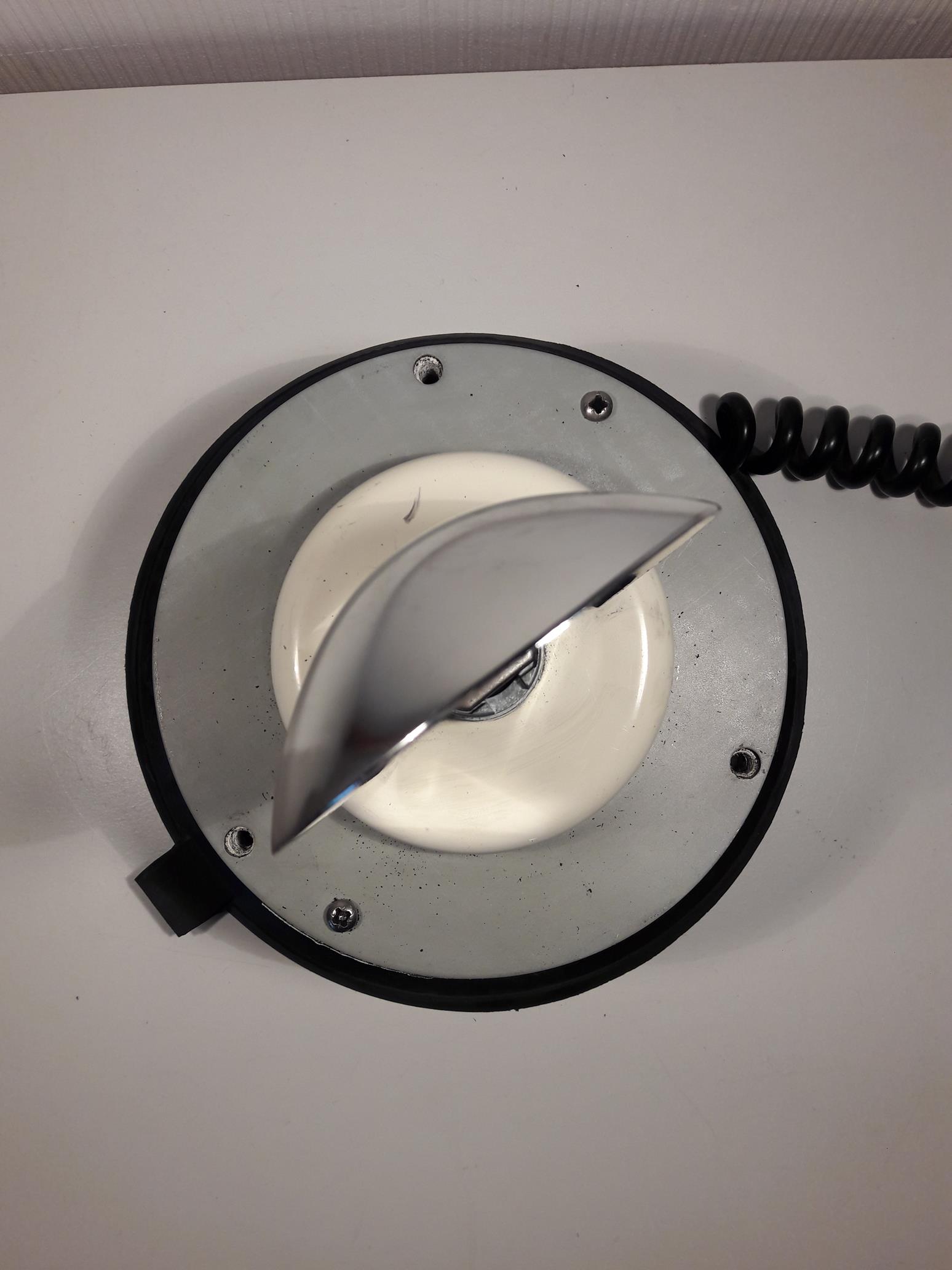 Ich habe sie vor ein paar Jahren gebraucht gekauft. Die Leuchte hat eine selten anzutreffende Haubenform und hält noch andere Überraschungen bereit, auf die ich im Rahmen dieser Vorstellung noch eingehen werde. Die TrafiBEACON ist knapp 18 cm hoch, hat einen Durchmesser von knapp 16,5 cm (Außendurchmesser der Lichthaube). Die Stromversorung erfolgt über ein ausreichend langes Spiralkabel mit Universalstecker (entspricht nicht dem originalen Auslieferungszustand). Anhang 25217 Befestigt wird die TrafiBEACON mit einem Magnetsauger. Anhang 25218 Die Lichthaube deckt nahezu die komplette Höhe der Leuchte ab und ist außen glatt. Oben auf der Lichthaube sind die Angaben zum Hersteller lesbar. Anhang 25219 Der obere Teil ist von innen horizontal geriffelt. Anhang 25220 Unter dem unteren Teil der Haube ist das Typenschild gut lesbar auf dem Gehäuse angebracht. Anhang 25222 Drei Schrauben mit Dichtring verbinden die Lichthaube mit dem Gehäuse. Die drei Schrauben sind sehr großzügig dimensioniert. Anhang 25221 Nach dem Entfernen der Lichthaube ist der Aufbau der Leuchte deutlich erkennbar: Doppelte Dichtlippe aus schwarzem Kunststoff (Teil des Magnetsaugers), weißes Kunststoffgehäuse (mit Typenschild), Grundplatte (1 mm dickes Metall), weiße Kunstsoffbasis der Reflektors (dreht mit und verdeckt den Antrieb), Reflektor (aus Metall) mit fest stehendem H1-Leuchtmittel. Die Befestigung der Drehspiegelbasis / das Lager hat merkliches Spiel (unklar ob Abnutzung oder Montagefehler). Die schwarzen Krümel sind augenscheinlich Abrieb/Verschleiß des Antriebsystems (vermutlich ein Reibrad), der sich im Leuchteninneren sammelt. Leider lässt sich die Leuchte nicht soweit zerlegen, um den Antrieb erkennen und fotografieren zu können. Anhang 25223 Anhang 25224 Nach dem Lösen von zwei Schrauben, lässt sich die Grundplatte vom Gehäuse trennen und der Blick auf die Unterseite ist frei. Auch hier sind schwarze Krümel vorhanden. Anhang 25225 Auf der Motoraufnahme befindet sich ein Aufkleber mit Angaben zum Motor. Anhang 25226 Interessant ist, neben dem Mix an verbauten Materialien, die Drehrichtung des Reflektors: (von oben gesehen) gegen den Uhrzeigersinn. Im Betrieb ist die TrafiBEACON relativ leise, jedoch macht sich das Lagerspiel deutlich bemerkbar. Video: <iframe src="https://www.youtube.com/embed/2Dhru-vXKxs" allow="autoplay; encrypted-media" allowfullscreen="" frameborder="0" height="315" width="560"></iframe> |