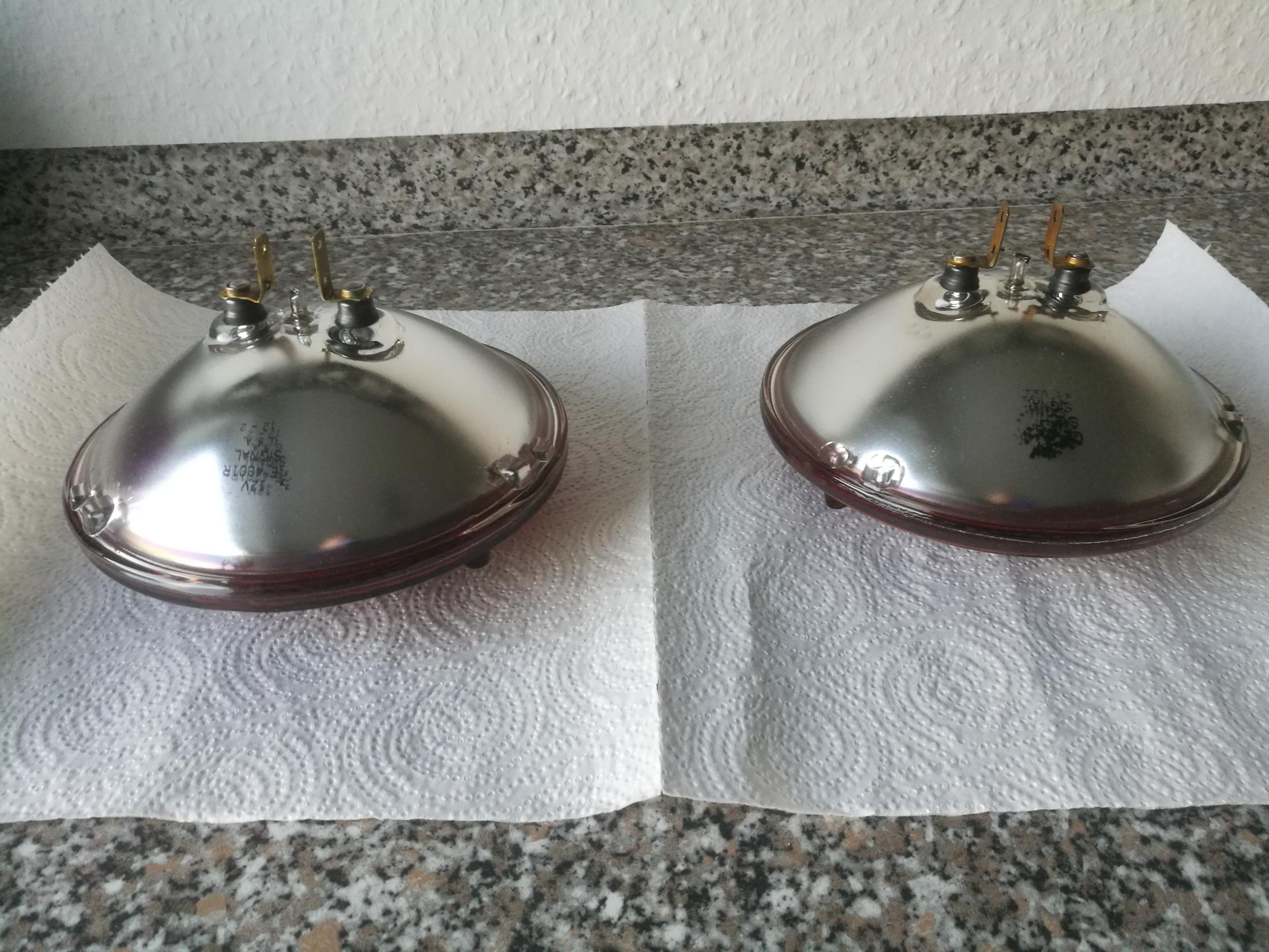 Erstmal gibt es die korrekten Leuchtmittel Für beide Frontleuchten PAR 46 GE4001R Anhang 25289 Anhang 25290 Das schöne ist, dass ich original Leuchtmittel gefunden habe mit dem Aufdruck vorn. Anhang 25291 Für die Heckleuchte PAR 46 4434A Anhang 25288 |