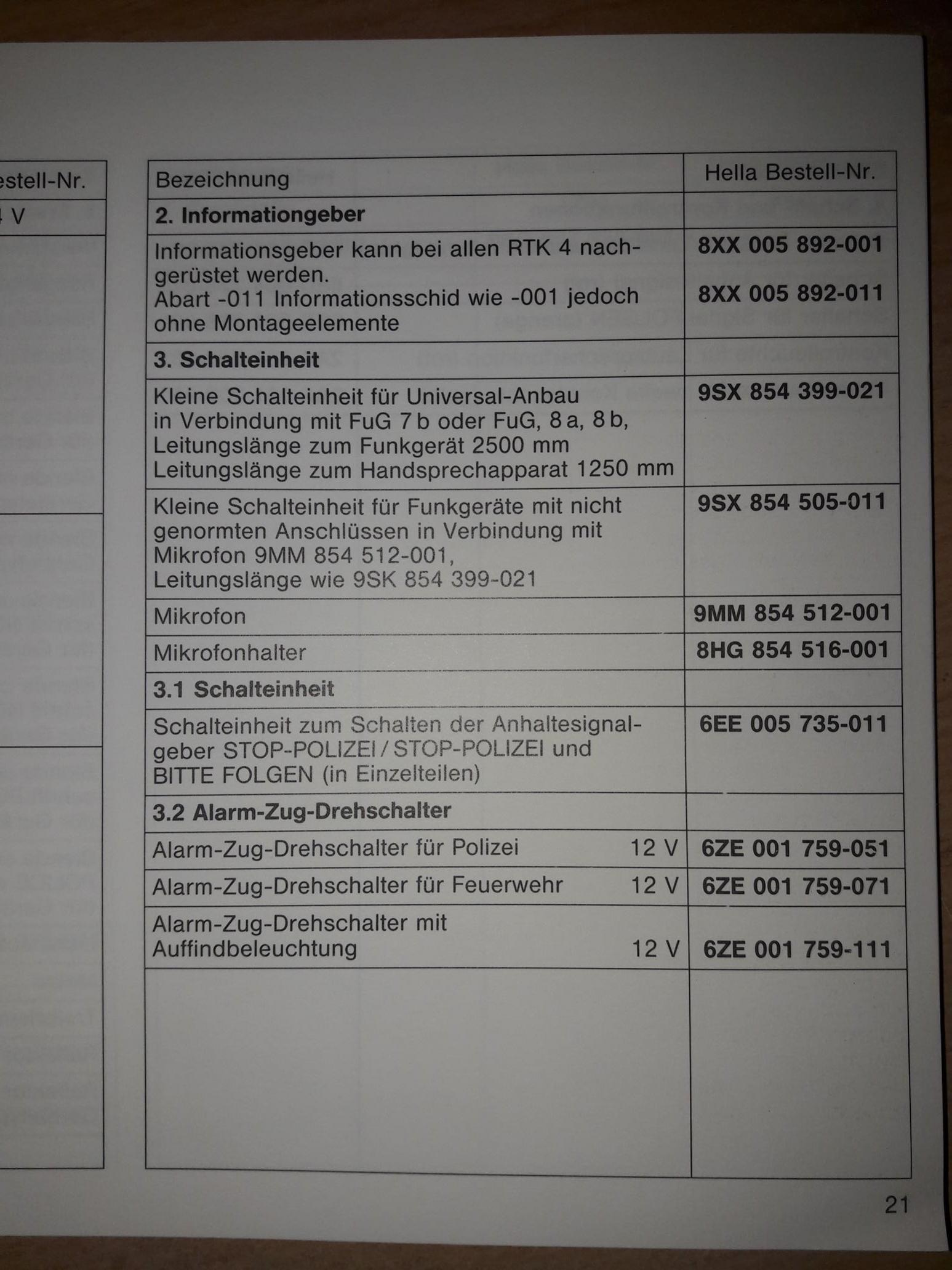 Die Teilemnummer für FuG 7b, 8a und 8b lautet: 9 SX 854 399-021 Für nicht genormte Funksprechgeräte oder ohne Funkgeräte: 9 SX 854 505-011 Anhang 25337 |