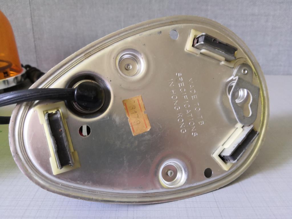 Model: <b>7-07</b> Volt: <b>12V</b> Herstellungsdatum: <b>Ende 70er bis Mitte 80er</b> Da soll mal noch einer sagen, es gibt keine Schnäppchen mehr. Dieses Schmuckstück erreichte mich heute, inkl. Versand/Zoll knapp 70€. NOS mit allem Zubehör. Trail-Brite gehörte irgendwie mit Dietz zusammen, denn die Modellbezeichnungen sind weitestgehend identisch. Auch der Sitz in Syracuse, NY wäre zuviel Zufall. Aufbau und Funktion wie bei der Fireball 1, ein Motor treibt den gummierten Rand des Drehtellers an. Dadurch erfolgt eine recht geräuscharme Übertragung statt. Anders als beim Zahnradantrieb. Der Dome sagt TB 7-07, teilweise sieht man Dietz beacons mit der gleichen Bezeichnung. |