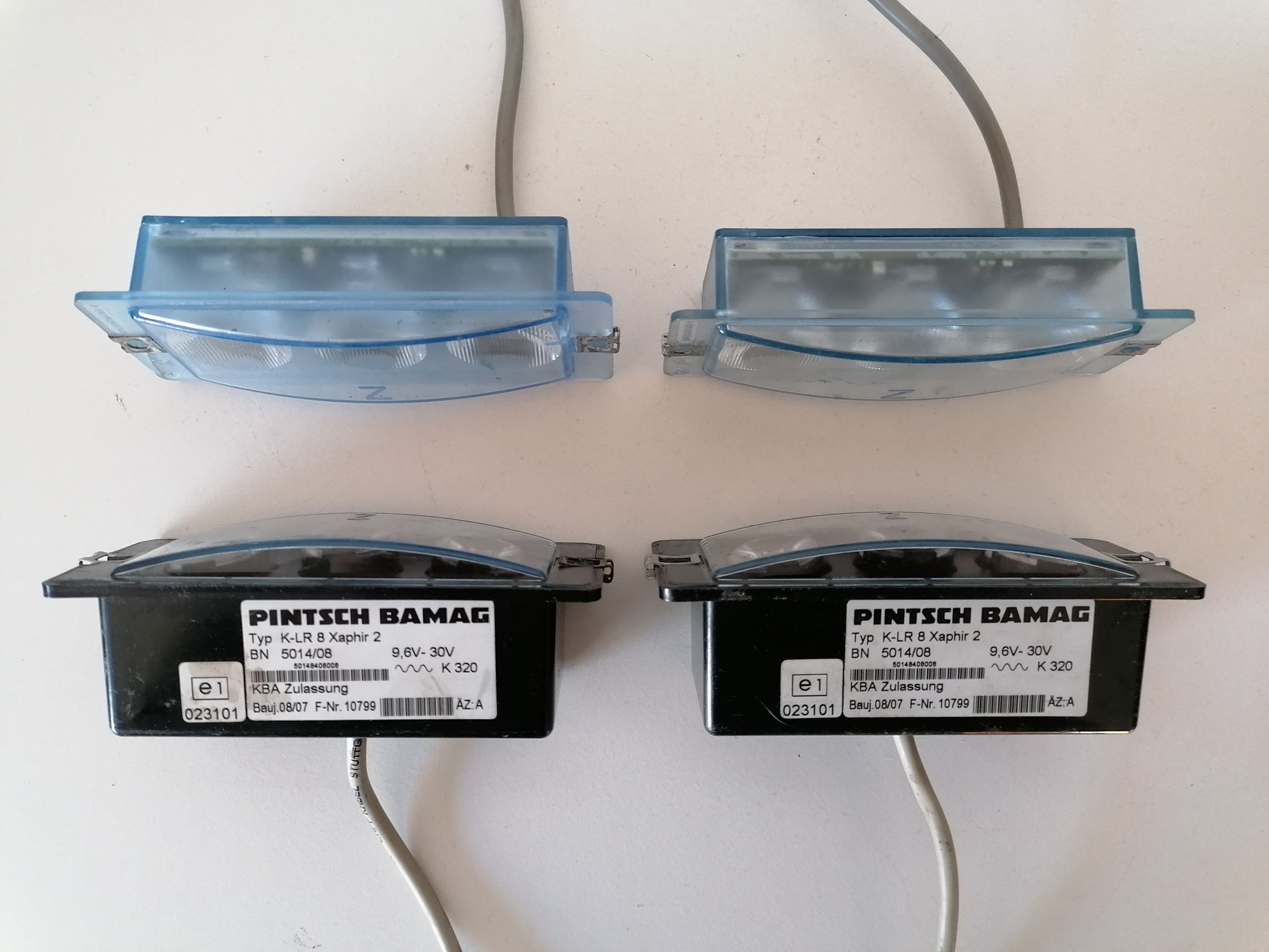 Sie werden paarweise in der Heckklappe von Einsatzfahrzeugen verbaut, um die Warnwirkung des verdeckten Blaulichts bei geöffneter Heckklappe zu kompensieren. Anhang 26778 Die Blitzer sind in einem hellblauen, transparenten Gehäuse verbaut und verfügen über drei LED, die mit einer vertikalen Optik versehen sind. Auffällig ist, dass die Lichtscheibe, wie bei den K-LR 8 Xaphir 2, gebogen ist, die LED und Optiken jedoch parallel zueinander ausgerichtet sind. Die Optiken haben jeweils einen Durchmesser von 3 cm. Anhang 26779 Die K-LR 9 VA1 sind 11 cm breit, 4,4 cm hoch und max. 3 cm tief. Damit sind sie noch einmal kompakter als die K-LR 8 Xaphier 2. Anhang 26783 Mein Set habe ich bereits verkabelt bekommen. Die Anschlusskabel sind ca. 85 cm lang. Anhang 26780 Auf der Rückseite eines Blitzer befindet sich das Typenschild. Ein zweites Typenschild klebt an den Kabeln (s.o.). Anhang 26781 Da bei dem zweiten Blitzer kein Typenschild aufgeklebt ist, ist der Blick auf die Platine im Inneren des Gehäuses frei. Anhang 26782 Das Blitzmuster ist ein Doppelblitz mit einer Frequenz von 2,1 Hz. Durch die Optiken wird das Licht sehr gut verteilt, sodass die Austrittsfläche sehr gut ausgeleuchtet wird. Anhang 26784 Video: <iframe width="560" height="315" src="https://www.youtube.com/embed/yJ8K9DDcCTU" frameborder="0" allow="accelerometer; autoplay; clipboard-write; encrypted-media; gyroscope; picture-in-picture" allowfullscreen></iframe> |