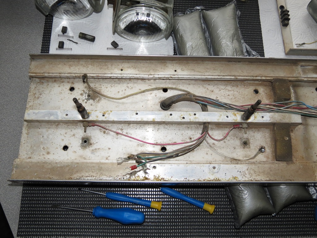 Als nächstes sind die Zwischenbleche dran: Anhang 27619 Obwohl schon alle Nieten entfernt sind, lassen sich die Grundbleche noch nicht von den "Wannen" trennen. Anscheinend hat da mal einer mit Silikon oder ähnlichem gearbeitet :roll: Noch nicht einmal die Grundplatten der Doppeldreher lassen sich abnehmen. :( Mal schauen wie ich die schadlos auseinander bekomme. Bin aber auch noch am überlegen, ob ich nicht evtl. mit diesen Zwischenblechen weitermache und so noch eine Option hinzufüge: Anhang 27620 Die stammen zwar auch aus einem SD mit Nightprobe - aber aus einen späteren Model, da nur noch eine zusätzlich Kohlebürste für den Nightprobe-Option verbaut war und er schon mit den neueren "schnellwechsel" Lampenhaltern ausgestattet war. Auch dieser SD hatte zum Nightprobe noch eine SelectAlert-Option. Hier sind anstelle der V-Spiegel jeweils 2 PAR36 Lampen verbaut und nannte sich SelectAlert Alternating Flashers. Es müsste also das ein oder andere angepasst werden und der Balken könnte hinterher etwa überladen wirken. :kratz: Mal schauen! |