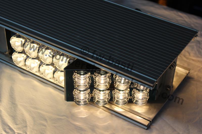 Anhang 27974 Die Hauptmodule bestehen, wie bei Hänsch üblich aus 8 LEDs welche mit einer Streulinse versehen sind. Insgesamt sind im Balken also 32 LEDs als Hauptkennleuchten vorhanden. Weitere Module wie Powerblitz, ASW oder RWS können nachgerüstet werden. In meinem Fall sind 2 Zusatzmodule mit jeweils 8 weiteren LEDs nach vorne verbaut. Anhang 27973 Wie immer bei Hänsch befindet sich das Typenschild jeweils seitlich. Besonderheit hier: Trotz Gelb wird der Balken als DBS und nicht als DBW aufgeführt, jedoch wird mit dem G in der Bezeichnung explizit auf die gelbe Variante hingewiesen. Das K2 am Ende steht für die mögliche Tag/Nachtumschaltung. Anhang 27975 Weitere Besonderheit bei meinem DBS: Die beiden Hauptkennleuchtenmodule sind alternierend synchronisiert. Anhang 27978 Aktivierte HKL ohne Zusatzmodule, trotzdem noch eine satte Lichtausbeute! Anhang 27979 Die LEDs der gelben Variante sind warmweiß. Die gelbe Färbung wird durch die Linsen erreicht. Anhang 27980 Das Zusatzmodul im Detail. Es handelt sich um die selbe Platine wie bei den HKL oder im DBS 3000 LED, nur mit anderen Linsen. Auch bei den Typ 40 LED findet eine solche Platine Verwendung. Das Modul wird direkt mit der Hauptkennleuchte auf der gleichen Seite synchronisiert. Ein "Alleinbetrieb" des Zusatzmodules ist nicht möglich, da erst von der HKL eine Freischaltung erfolgen muss. Anhang 27977 Der Kabelsatz aus dem Balken besteht aus Spannungsversorgung, sowie der Steuerleitung für HKL ein, Zusatzblitzer ein, Umschaltung auf Nachtmodus, sowie den Kontrollleitungen. Anhang 27976 Fazit: Sonnenbrille nicht vergessen! Die Lichtleistung mit den Zusatzmodulen ist wirklich Wahnsinn und tut fast in den Augen weh. |